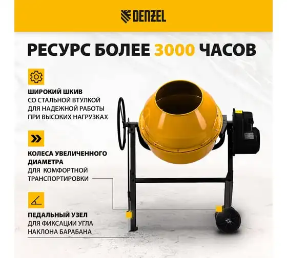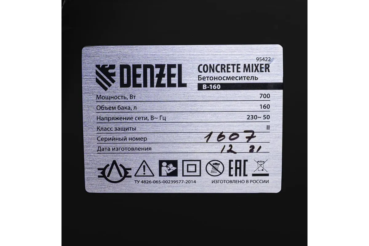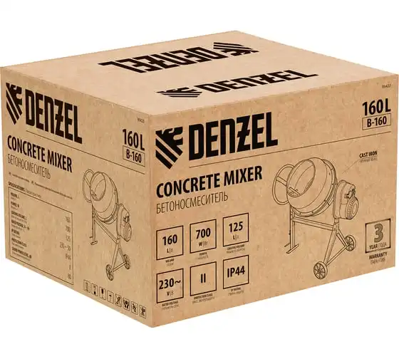 Бетоносмеситель Denzel B-160 95422 имеет двойную изоляцию всех электрифицированных элементов, что способствует безопасности оператора при работе. Защита от перегрева и перегрузок увеличивает срок службы строительной техники. Благодаря медной обмотке двигателя модель стабильно работает в том числе и при пониженном напряжении питающей цепи. Угол наклона бака легко и просто фиксируется при помощи педали. Порошковая окраска гарантирует защиту конструкции от образования коррозии. Широкие шкивы со стальной втулкой размещены в одной плоскости, что исключает смещение износостойкого поликлинового ремня.