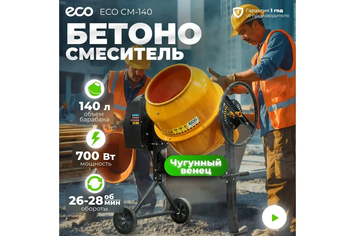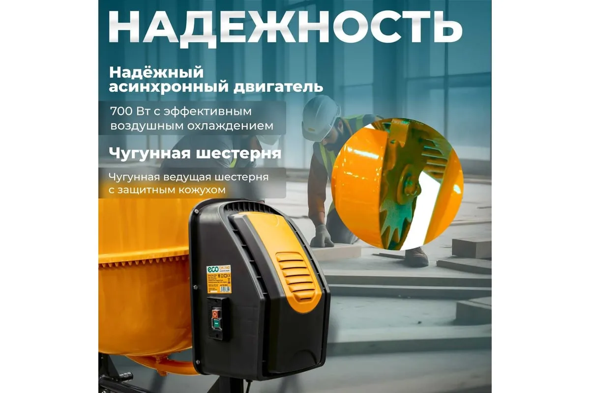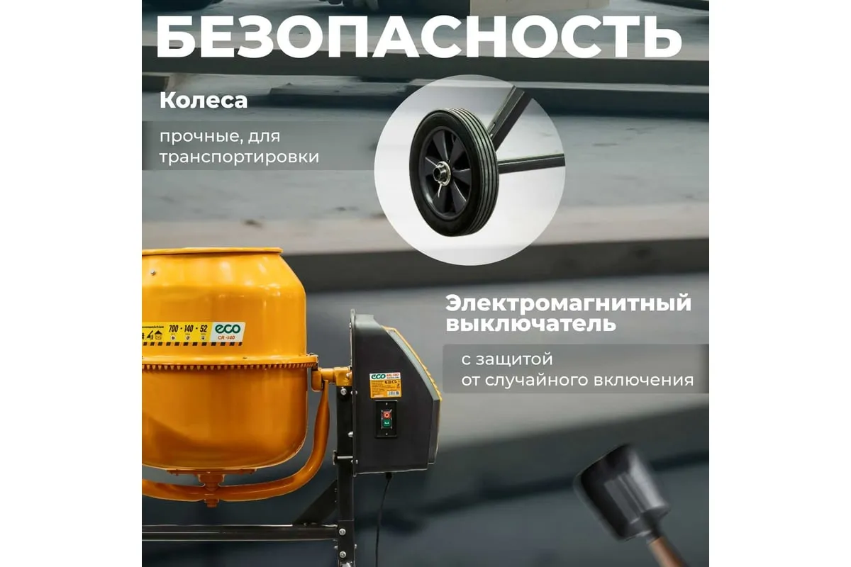 Бетономешалка ECO CM-140 (EC3410-4) - это высококачественное строительное оборудование, предназначенное для приготовления бетонных смесей.