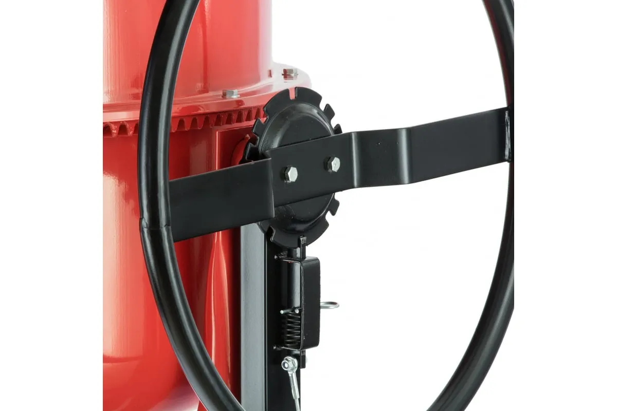 Чугунный венец с высоким пределом прочности устойчив к разрушению. Благодаря наличию защитного кожуха, исключено попадание инертных материалов на двигатель. Колеса диаметром 180 мм упрощают перемещение оборудования по рабочей площадке.