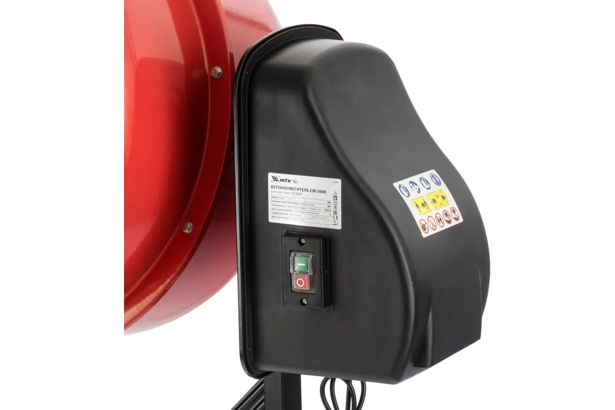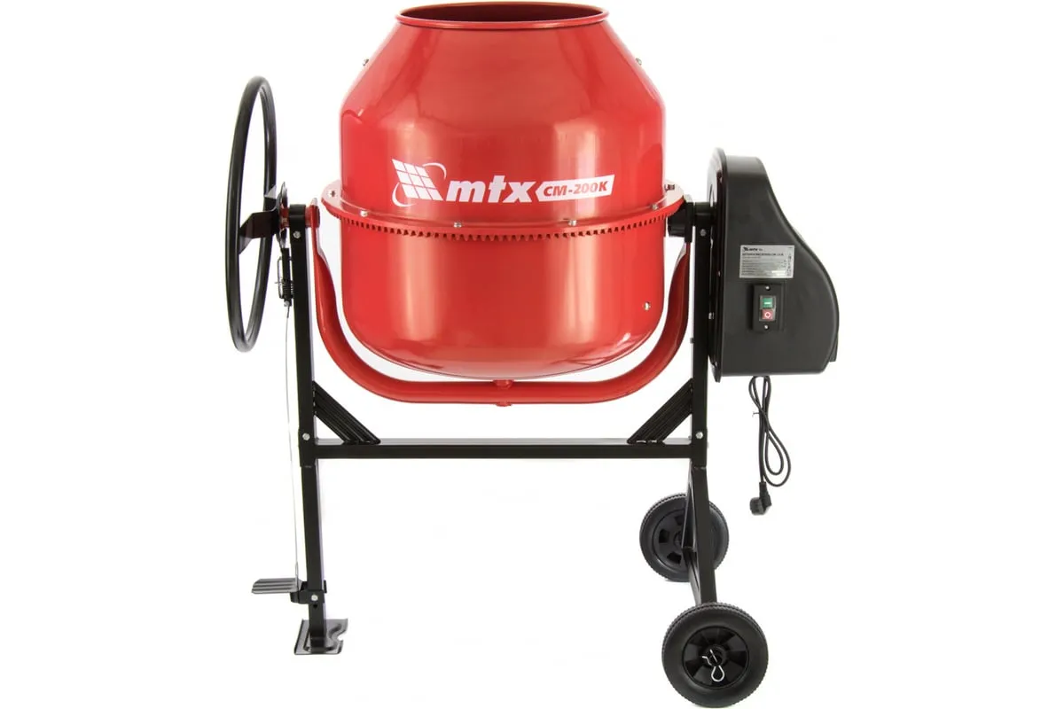 Бетоносмеситель MTX СМ-200К, 200 л, мощность 900 Вт 95485 используют для замешивания растворов и бетонных смесей. Модель широко используют во время строительных, ремонтных и отделочных работ. Опорная рама обладает стойкостью к механическим повреждениям.