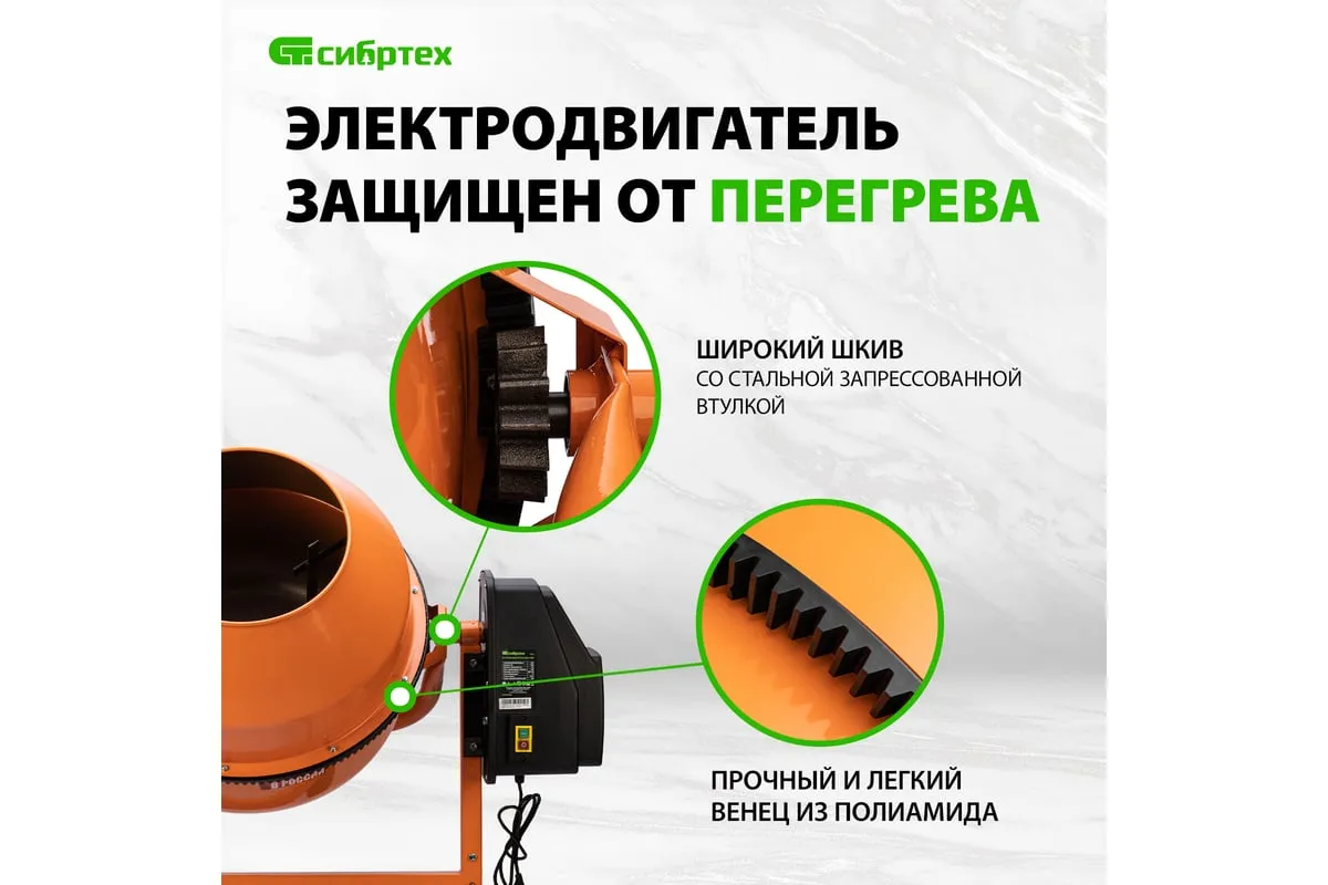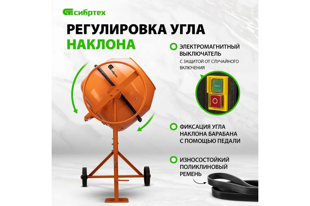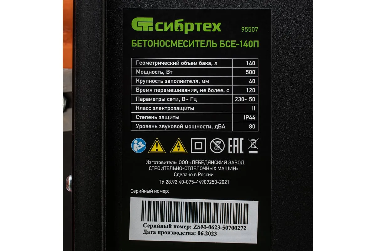 Бетоносмеситель Сибртех БСЕ-140П 95507 мощностью 500 Вт, с баком объемом 140 л и полиамидным венцом, предназначен для замешивания бетонных и штукатурных смесей. Объем готового раствора составляет 50 л, поэтому бетономешалка будет полезна для проведения строительных и ремонтных работ на дачном участке. Благодаря венцу из стеклонаполненного полиамида бетоносмеситель работает тихо, его использование не доставляет неудобств.