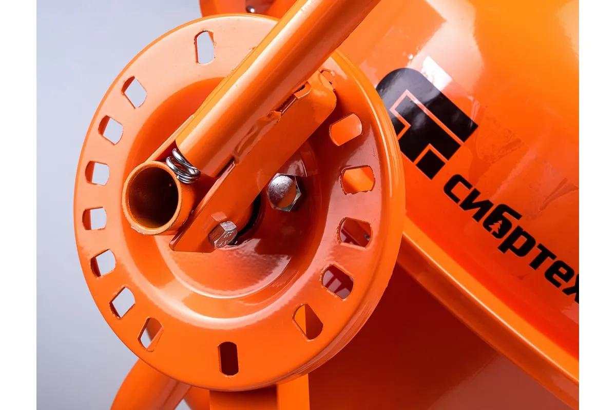 Ножная педаль помогает зафиксировать барабан под необходимым углом наклона, что упрощает его заполнение компонентами и выгрузку готовой смеси.