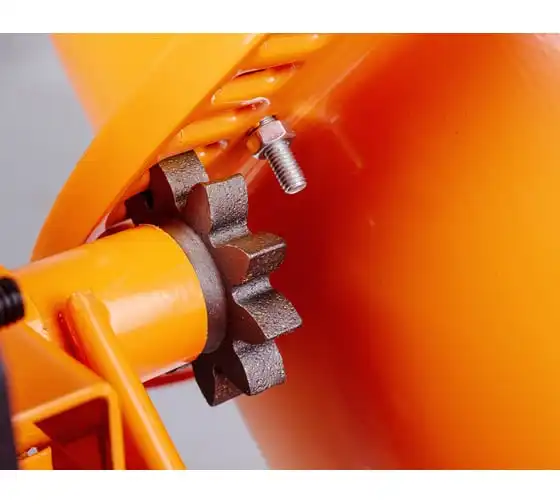 Опорная ножка обеспечивает устойчивость бетоносмесителя на рабочей площадке, а колеса диаметром 20.5 мм делают простым его перемещение.