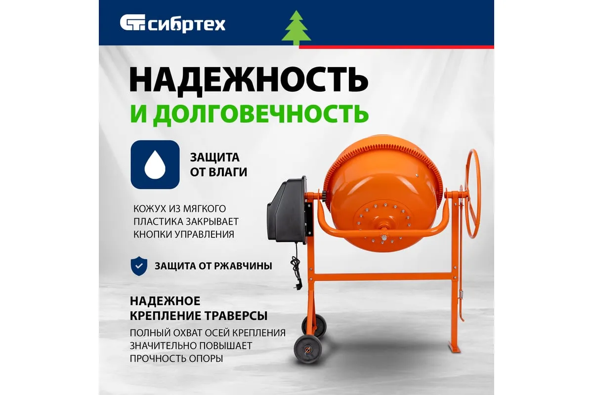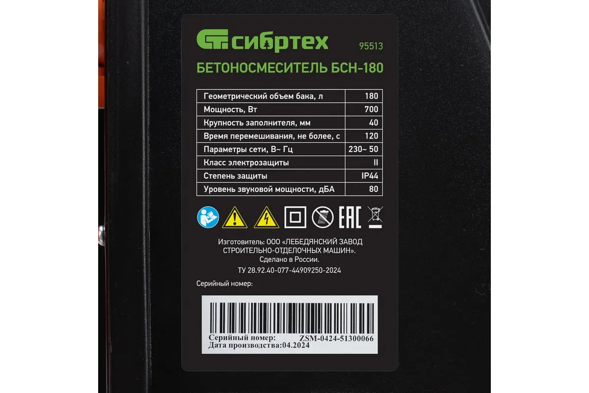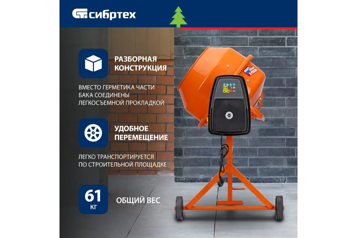 Бетоносмеситель Сибртех БСН-180 95513 мощностью 700 Вт предназначен для приготовления бетонных смесей и штукатурных растворов. Допускается использование крупнозернистых заполнителей с фракциями размером до 40 мм. Объем бака составляет 180 л, за один замес можно получить до 80 л готовой смеси. Время замешивания не превышает 2 минут, что позволяет избежать длительных перерывов в работе. Бетоносмеситель пригодится для проведения строительных работ. Двигатель мощностью 700 Вт обеспечивает высокую производительность, при этом не создает значительной нагрузки на электросеть. Бетоносмеситель пригодится для проведения строительных работ небольшого объема.
