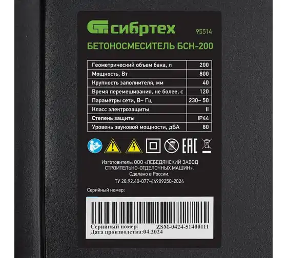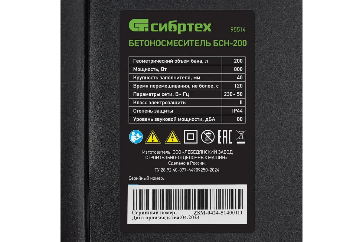 Бетоносмеситель Сибртех БСН-200 95514 мощностью 800 Вт предназначен для приготовления бетонных смесей и штукатурных растворов. Допускается использование крупнозернистых заполнителей с фракциями размером до 40 мм. Объем бака составляет 200 л, за один замес можно получить до 96 л готовой смеси. Время замешивания не превышает 2 минут, что позволяет избежать длительных перерывов в работе. Бетоносмеситель пригодится для проведения строительных работ. Двигатель мощностью 800 Вт обеспечивает высокую производительность, при этом не создает значительной нагрузки на электросеть. Бетоносмеситель пригодится для проведения строительных работ небольшого объема.
