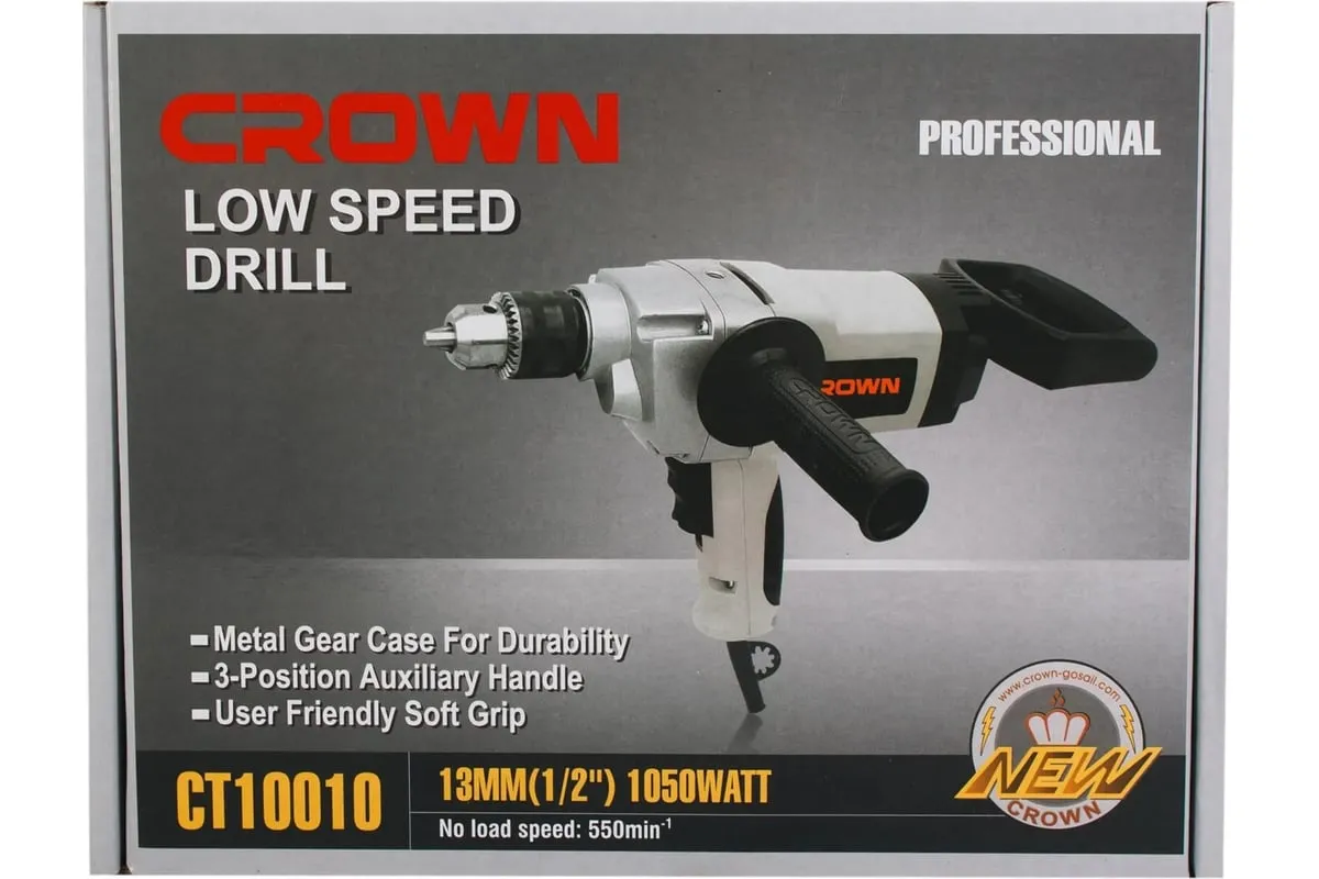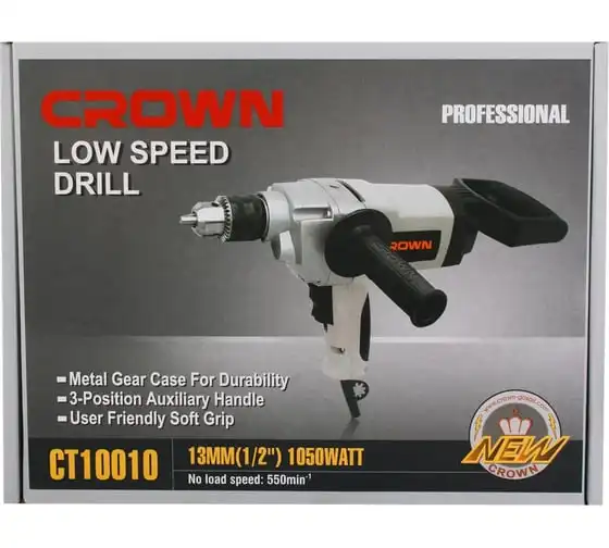 Безударная дрель CROWN CT10010 разработана для сверления стали, дерева и керамики, а также перемешивания строительных составов и смесей (при оснащении подходящей оснасткой).