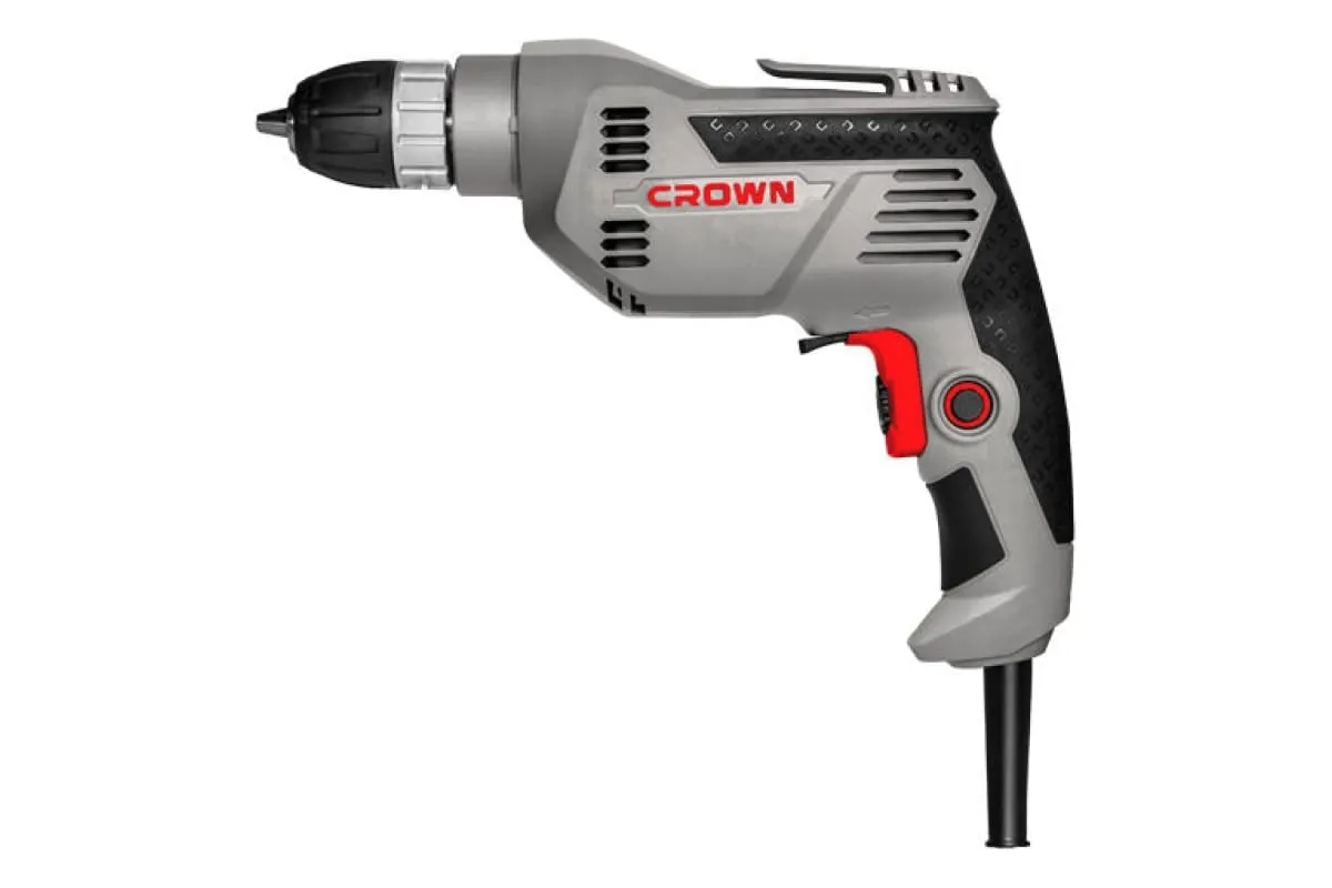 Дрель Crown CT10127-13C оснащена регулировкой частоты вращения, с помощью встроенного в клавишу выключателя регулятора с 10-ю ступенями настройки под используемую оснастку.
