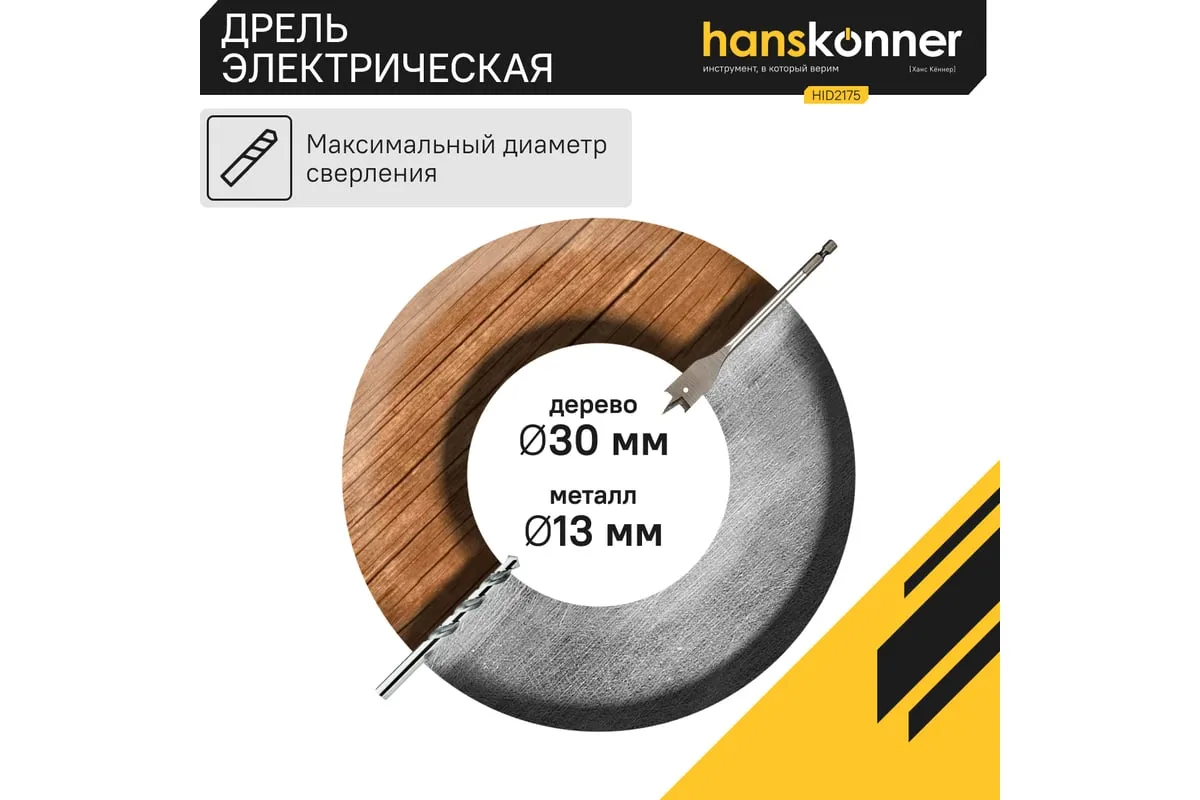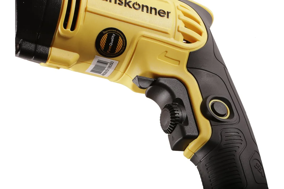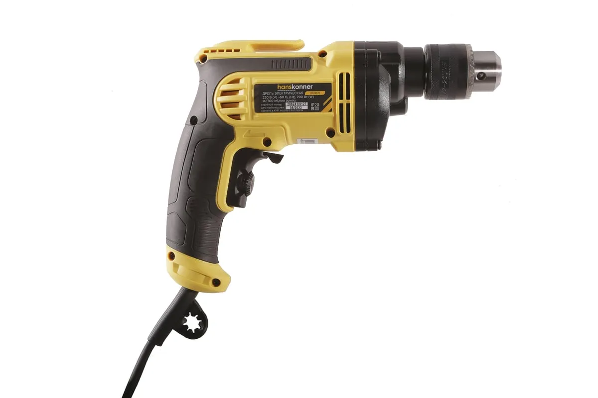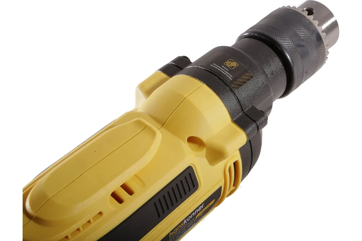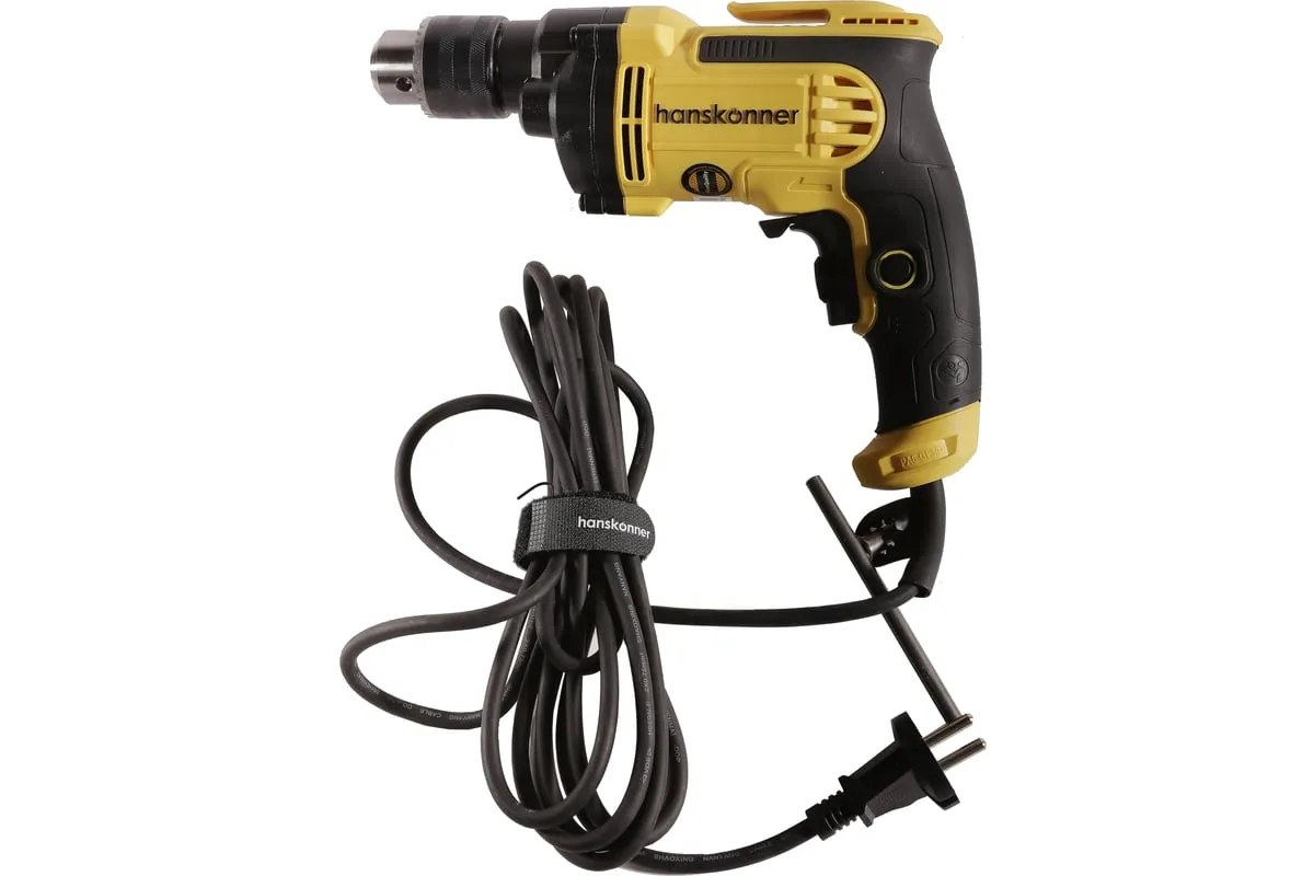 Безударная дрель Hanskonner HID2175 – компактный и мощный электроинструмент, с кулачковым патроном и надежной конструкцией для сверления отверстий в различных материалах: пластик, дерево, сталь. Данная модель оснащена понижающим редуктором, что позволяет легко просверливать отверстия большого диаметра, а также размешивать строительные смеси, при наличии специальной насадки. В интересах длительности эксплуатации используются фирменные подшипники увеличенного ресурса и металлический корпус редуктора, способствующий качественному теплоотводу. Безударная конструкция инструмента позволяет минимизировать люфты, отчего становится возможным максимально точное сверление. Удобству в обращении способствует фиксатор-липучка кабеля и блокировка выключателя во включенном положении при длительных работах. Морозостойкий резиновый сетевой кабель длинной 4 м, позволяет охватит рабочую зону площадью 50 м2.