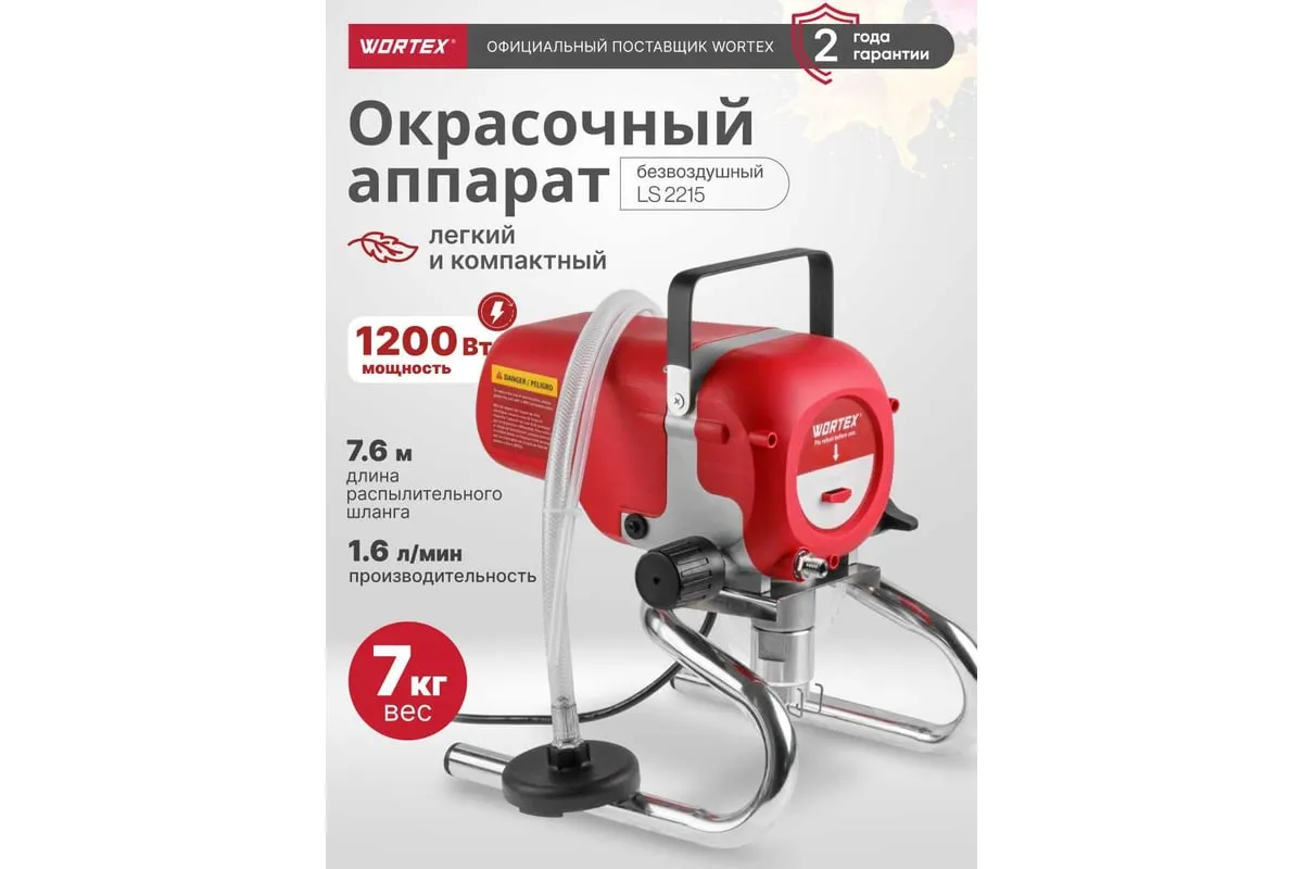 Безвоздушный окрасочный аппарат WORTEX LS 2215 1304439 обеспечивает быстрое и эффективное нанесение краски, экономя ее благодаря широкому распыляемому потоку. Краскопульт позволяет наносить покрытия равномерным и толстым слоем за счет отсутствия посторонних частиц и воздуха. Краску необходимо разбавлять гораздо меньше, чем для других краскопультов. Кроме того, его компактные размеры и легкий вес делают его удобным в переноске.