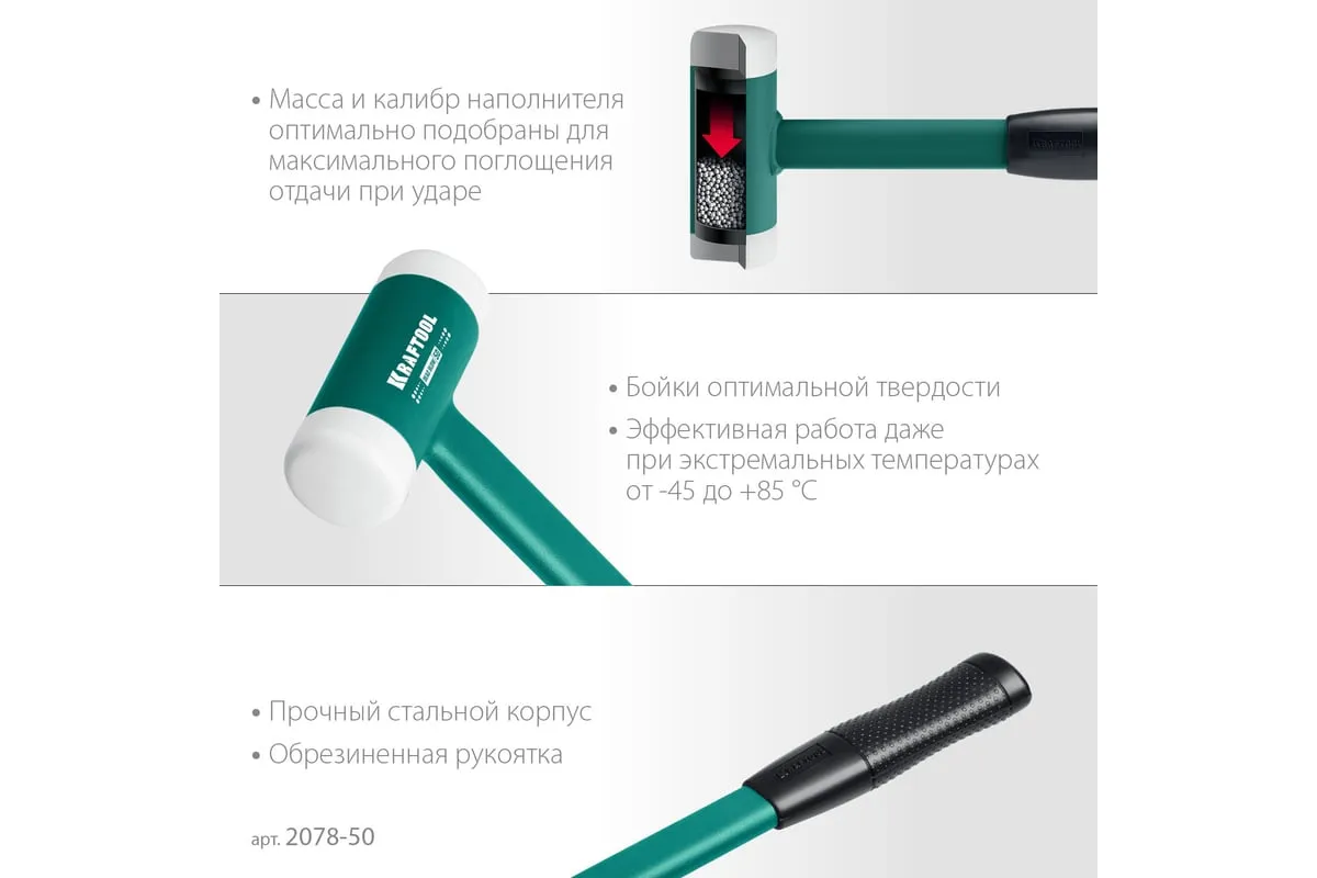 Профессиональный безынерционный многофункциональный инструмент предназначен для слесарно-монтажных и демонтажных работ, а также для работ с мягкими листовыми металлами. Молоток оснащен сменными бойками средней твердости, что позволяет работать с различными материалами не повреждая их. Инерция удара гасится благодаря применению специального металлического наполнителя.