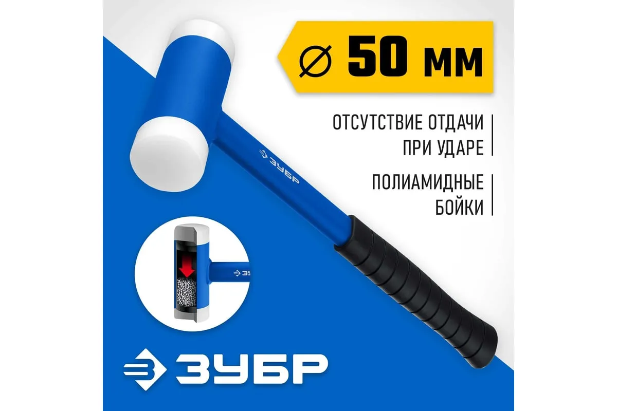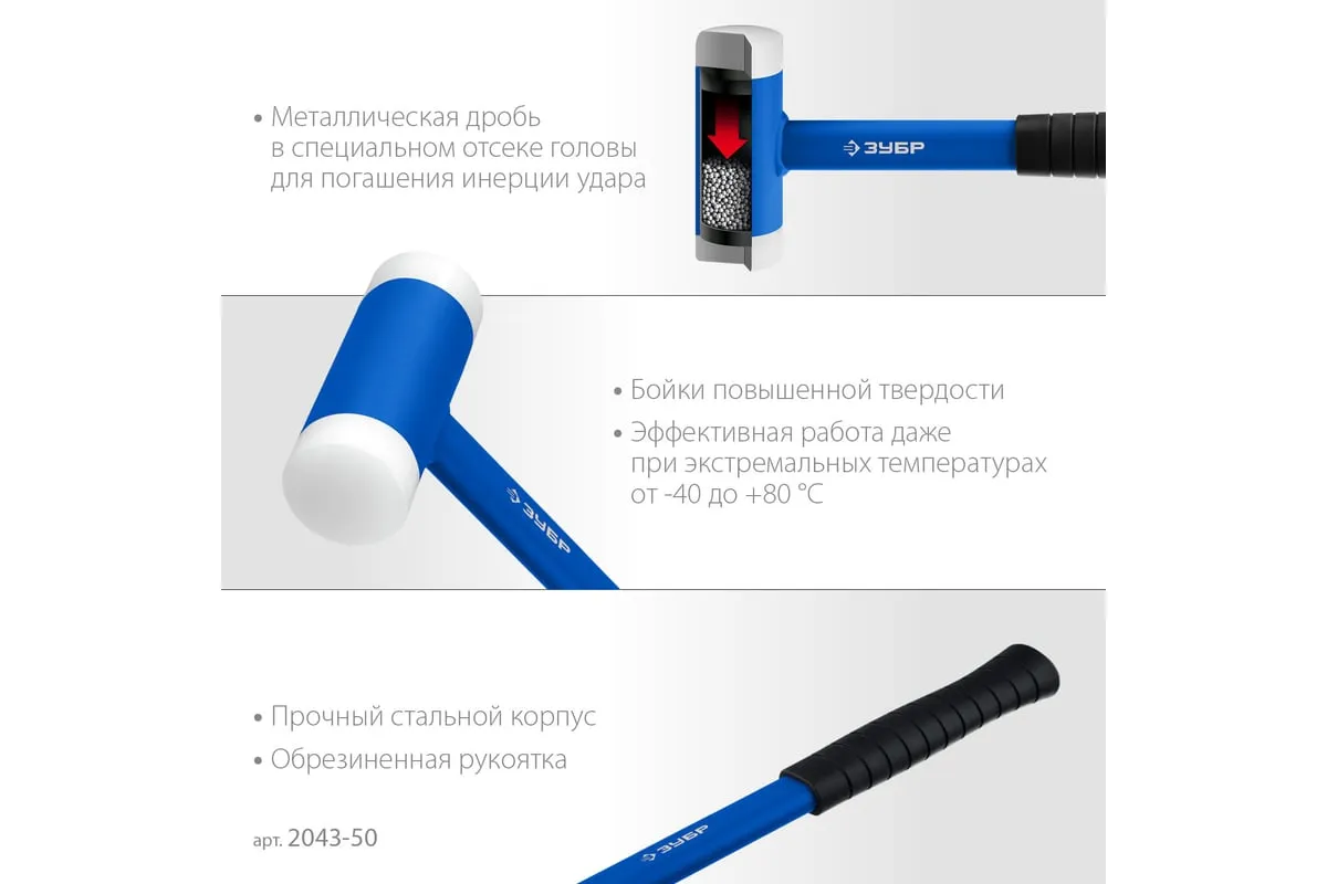 Профессиональный безынерционный многофункциональный инструмент предназначен для слесарно-монтажных и демонтажных работ, а также для работ с мягкими листовыми металлами. Оснащен сменными бойками средней твердости, что позволяет работать с различными материалами не повреждая их. Инерция удара гасится благодаря применению специального металлического наполнителя. Металлическая обрезиненная рукоятка эргономичной формы обеспечивает надежный захват и комфортную работу.