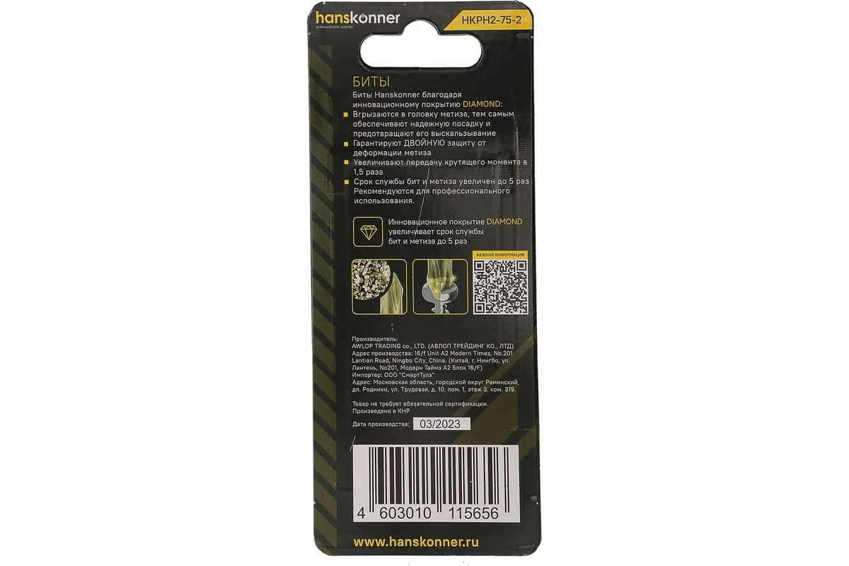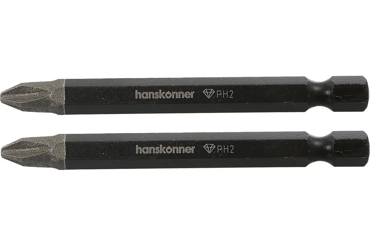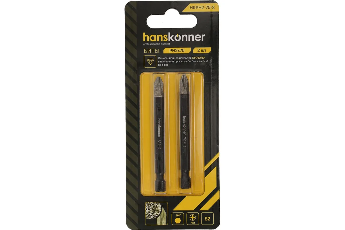 Биты PH2х75 мм, 2 шт Hanskonner HKPH2-75-2 благодаря инновационному покрытию DIAMOND вгрызаются в головку метиза, тем самым обеспечивают надежную посадку и предотвращают его выскальзывание. Гарантируют двойную защиту от деформации метиза, увеличивают передачу крутящего момента в 1,5 раза.