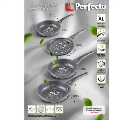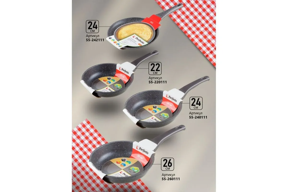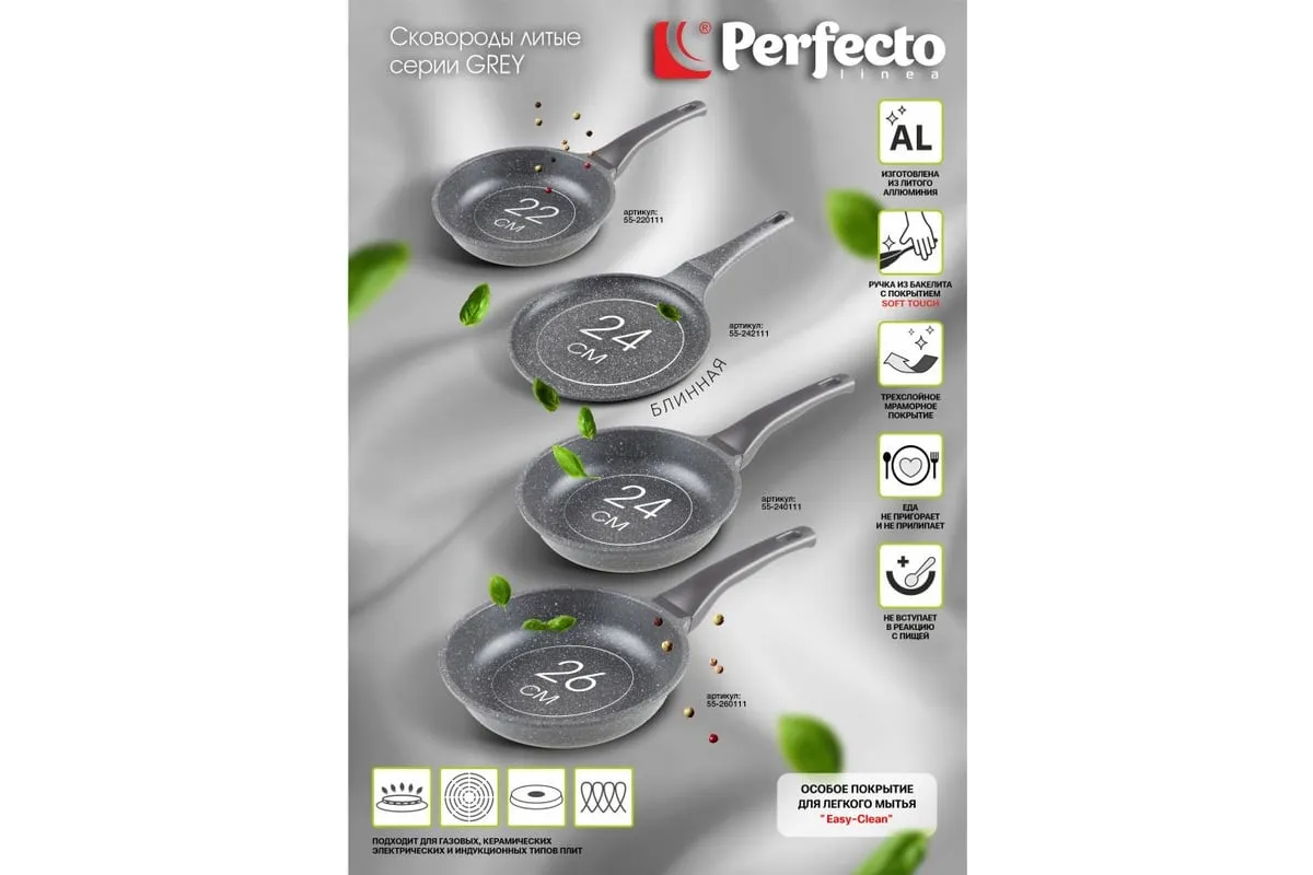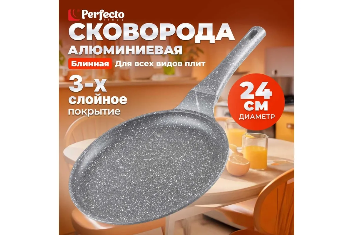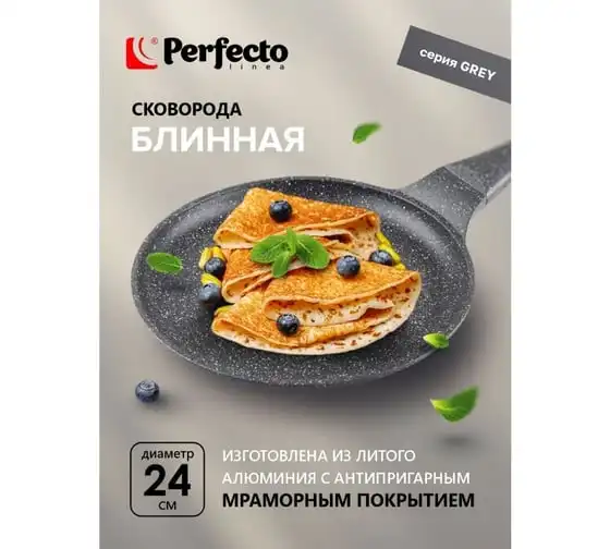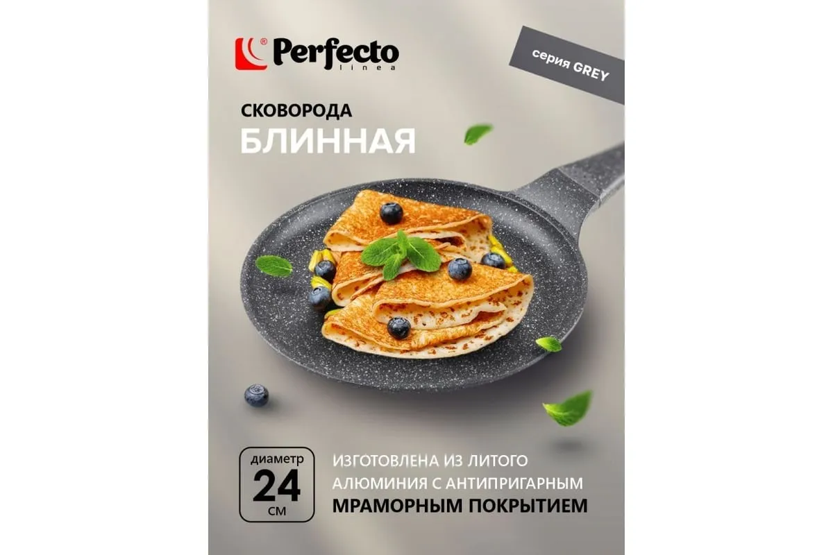 Блинная литая сковорода PERFECTO LINEA Grey 24 см 55-242111предназначена для готовки. Подходит для плит любого типа, поэтомупрактична в использовании. Легко моется, чтоэкономит время и силы. Сковорода не токсична, за счет чегобезопасна для здоровья.