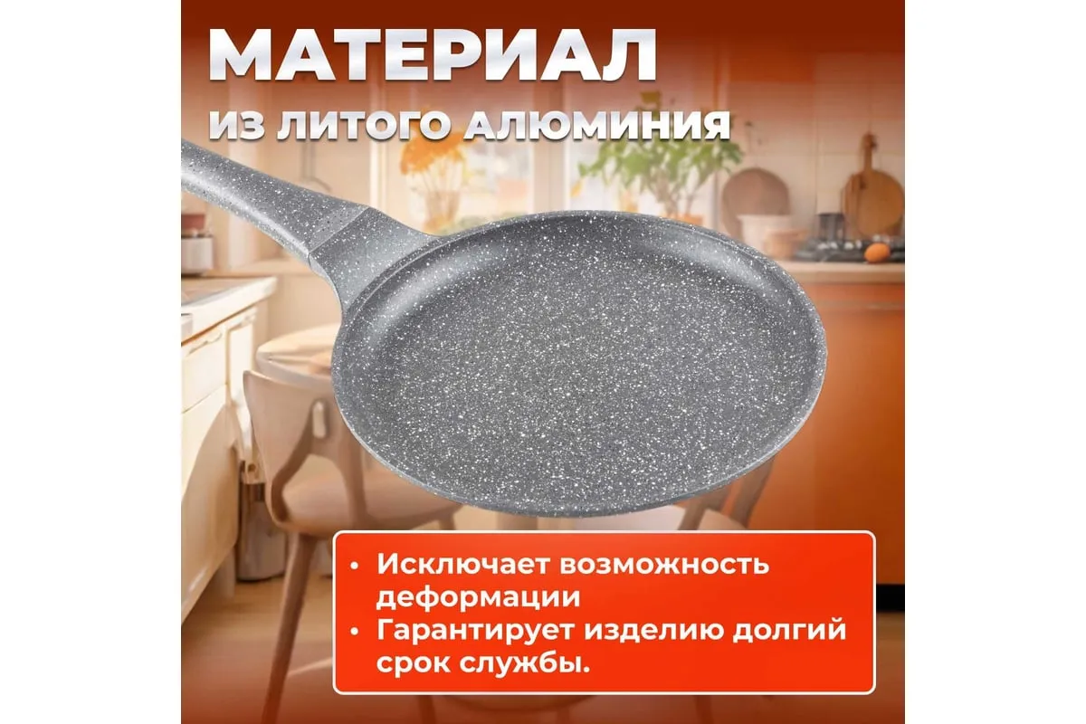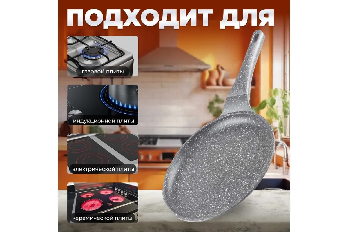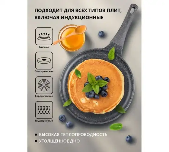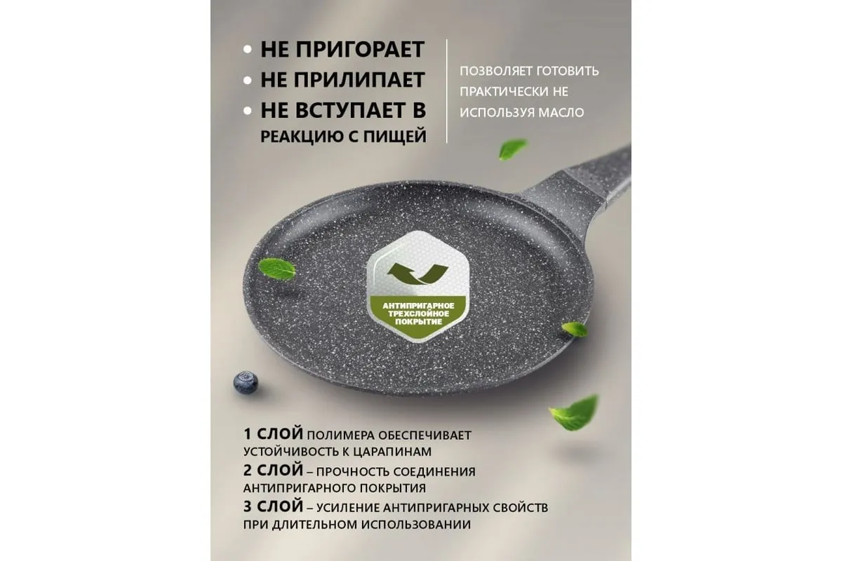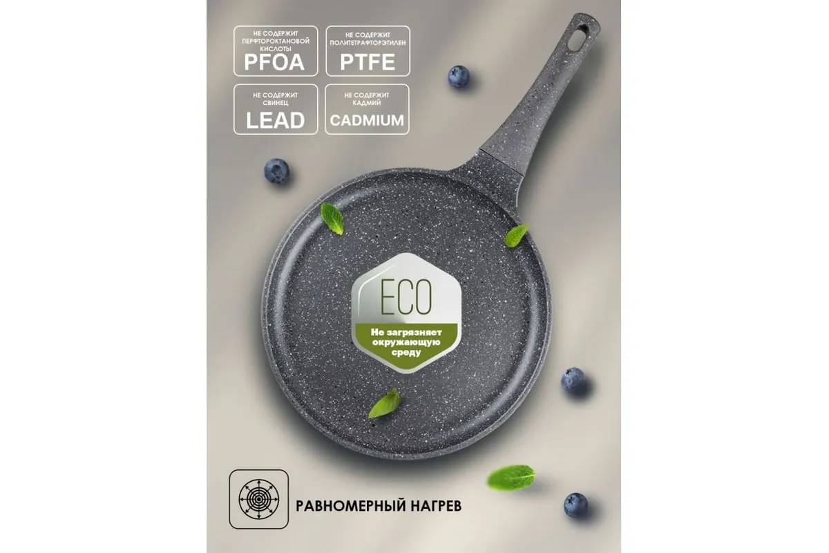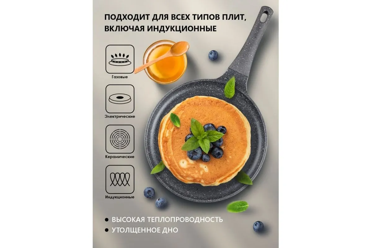 Блинная литая сковорода PERFECTO LINEA Grey 24 см 55-242111предназначена для готовки. Подходит для плит любого типа, поэтомупрактична в использовании. Легко моется, чтоэкономит время и силы. Сковорода не токсична, за счет чегобезопасна для здоровья.