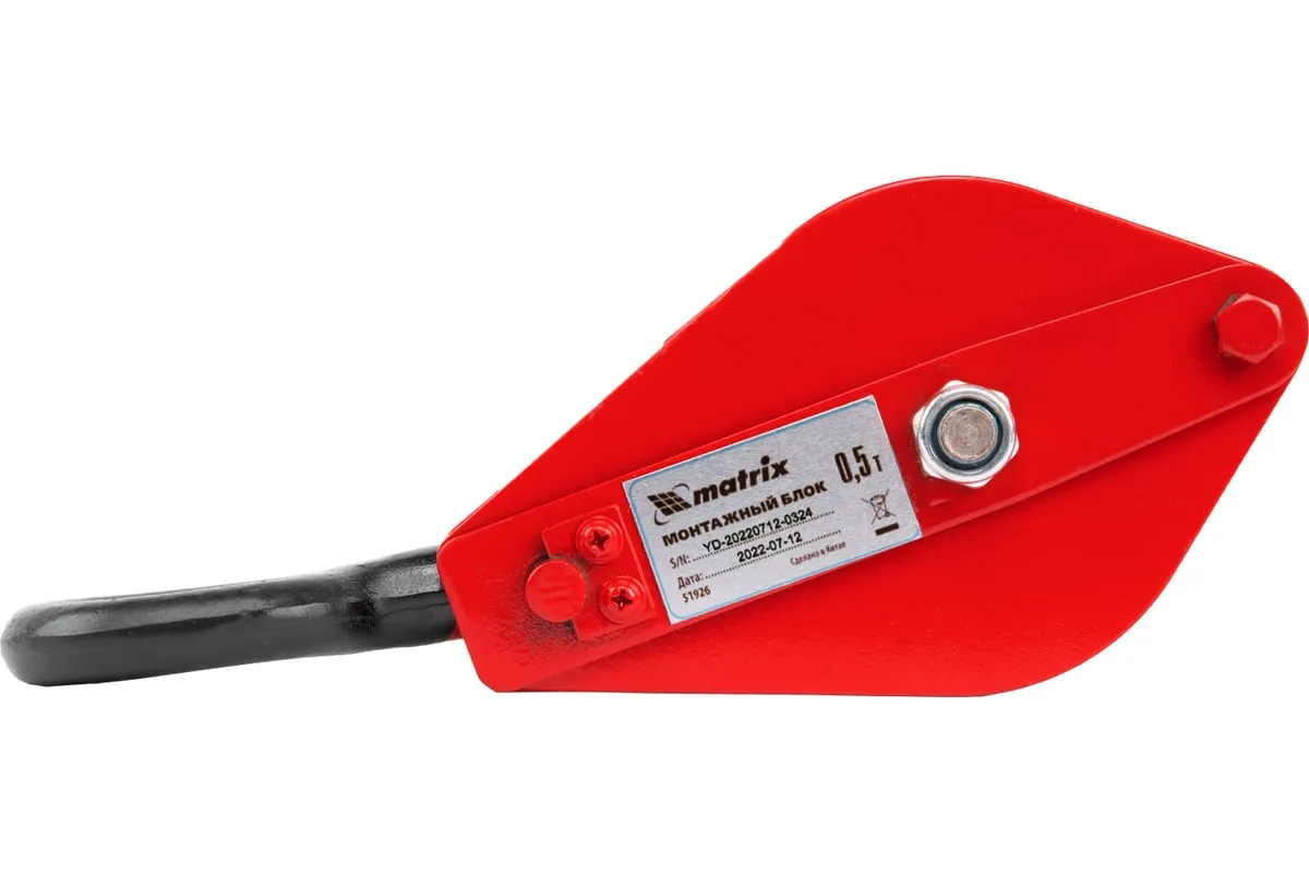 Монтажный блок с проушиной Matrix 51926 грузоподъемностью 0,5 т расширяет функциональные возможности ручного и электрического грузоподъемного оборудования. Он позволяет менять направление движения груза, а также увеличивает подъемную силу.