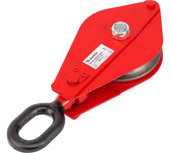 Монтажный блок с проушиной Matrix 51926 грузоподъемностью 0,5 т расширяет функциональные возможности ручного и электрического грузоподъемного оборудования. Он позволяет менять направление движения груза, а также увеличивает подъемную силу.