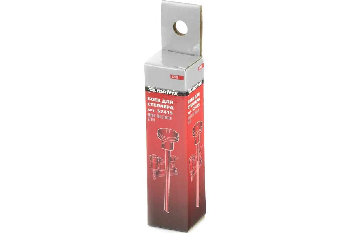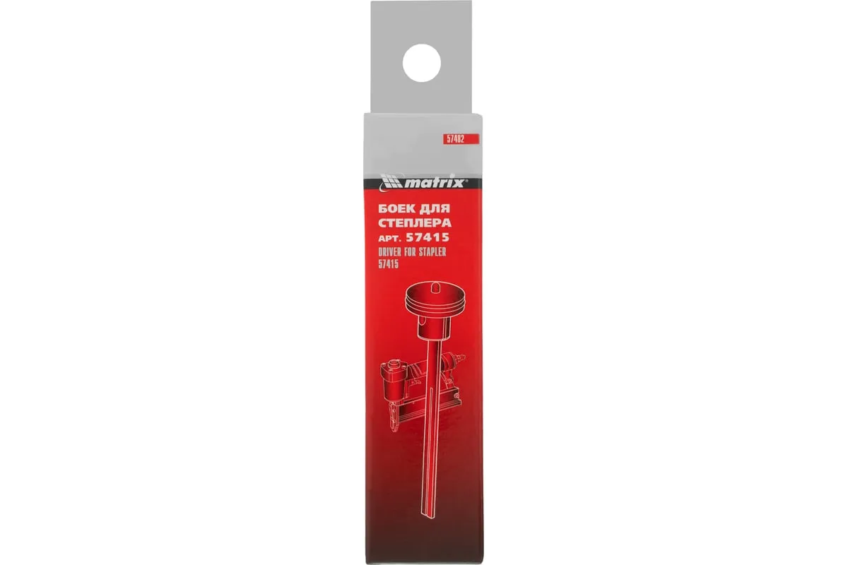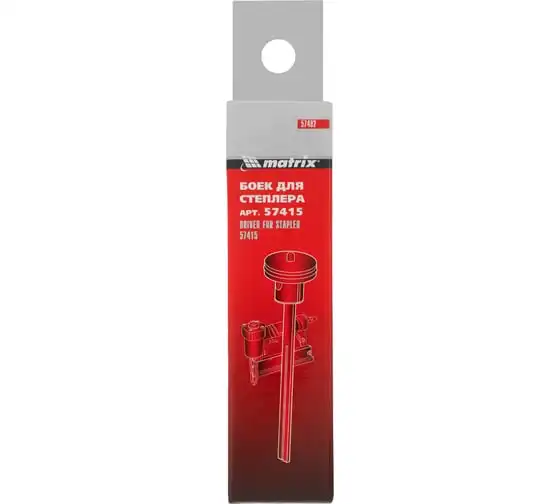 Боек Matrix 57482 предназначен для установки на пневматический степлер 57415. Снабжен уплотнительным кольцом, обеспечивающим стабильную работу инструмента при давлении до 10 МПа и температуре воздуха до -20 градусов C.