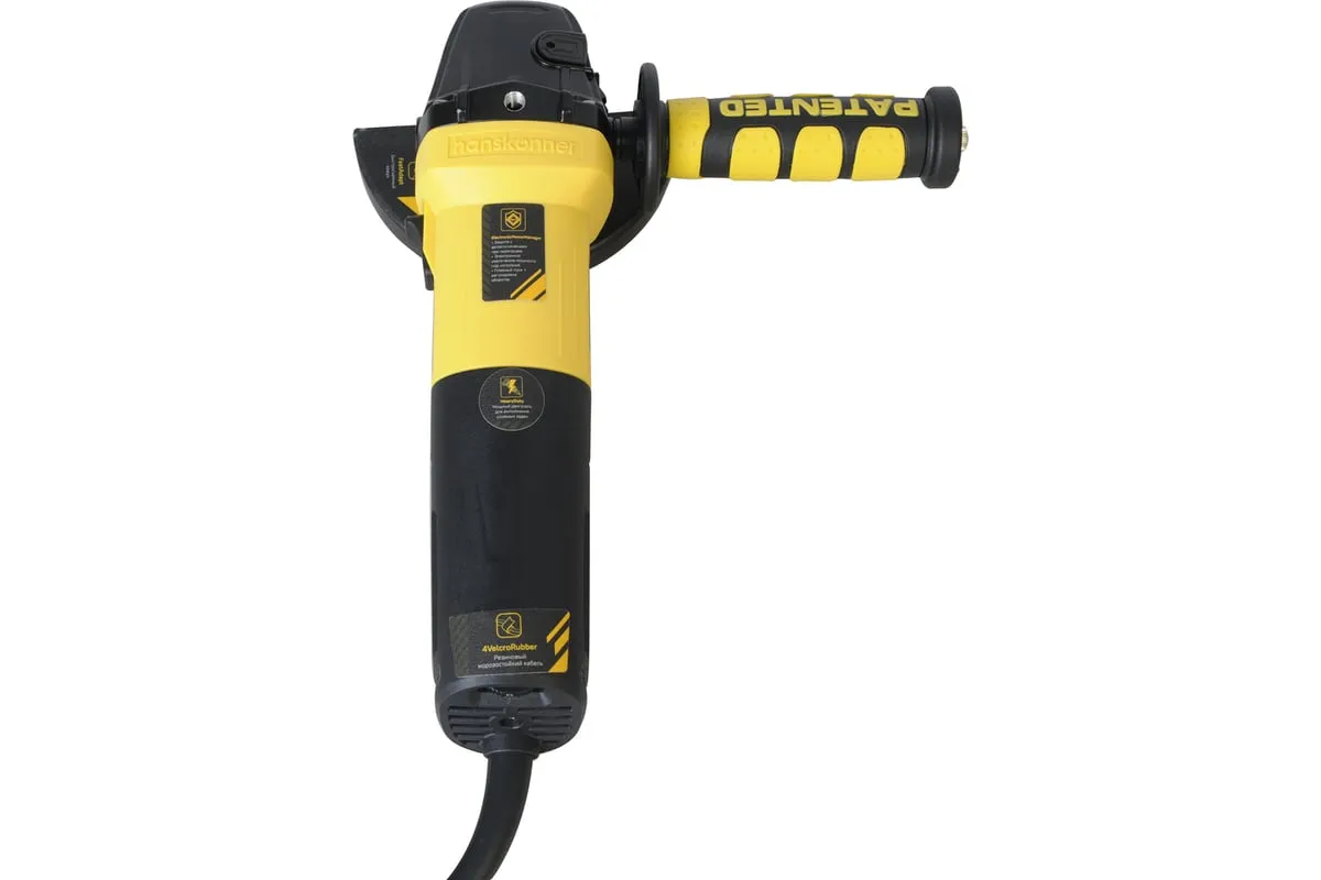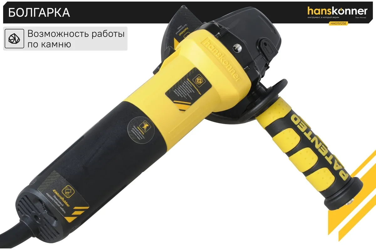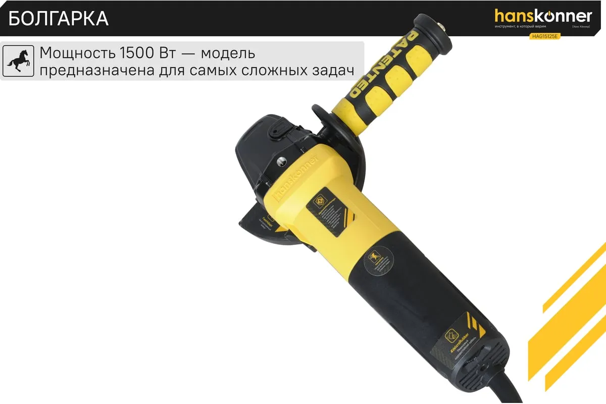 Угловая шлифовальная машина Hanskonner HAG15125E — мощный электроинструмент для шлифования и зачистки поверхностей, а также резки металлов, кирпича, керамики или камня без использования воды. Данную модель легко настроить под конкретную операцию и материал благодаря наличию электронной регулировки оборотов. Качественная пыле-защищенность и защита от перегрузок способствуют ее долговечности. Также имеется функция повышения мощности под нагрузкой, что содействует увеличению продуктивности. Electronic power manager (ЕРМ)– полное электронное управление двигателем с константной электроникой обеспечивает плавный пуск, регулировку оборотов и поддержание оптимальной скорости оборотов под любой нагрузкой, а также защита двигателя от перегрузок убережет инструмент от выхода из строя из-за слишком высоких токов.