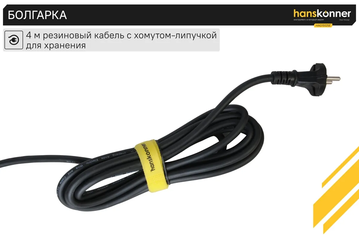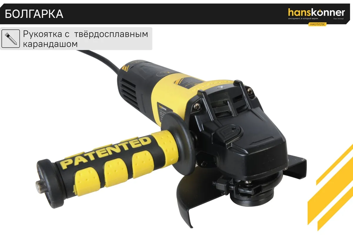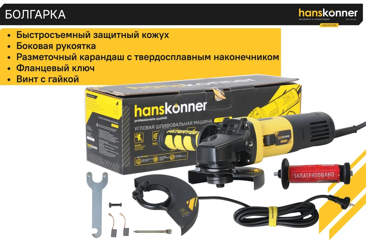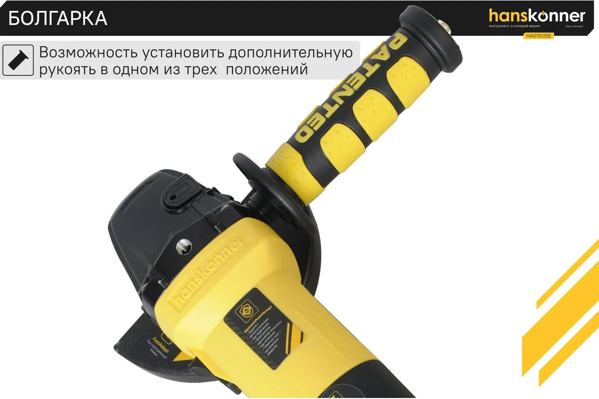 Угловая шлифовальная машина Hanskonner HAG15125E — мощный электроинструмент для шлифования и зачистки поверхностей, а также резки металлов, кирпича, керамики или камня без использования воды. Данную модель легко настроить под конкретную операцию и материал благодаря наличию электронной регулировки оборотов. Качественная пыле-защищенность и защита от перегрузок способствуют ее долговечности. Также имеется функция повышения мощности под нагрузкой, что содействует увеличению продуктивности. Electronic power manager (ЕРМ)– полное электронное управление двигателем с константной электроникой обеспечивает плавный пуск, регулировку оборотов и поддержание оптимальной скорости оборотов под любой нагрузкой, а также защита двигателя от перегрузок убережет инструмент от выхода из строя из-за слишком высоких токов.