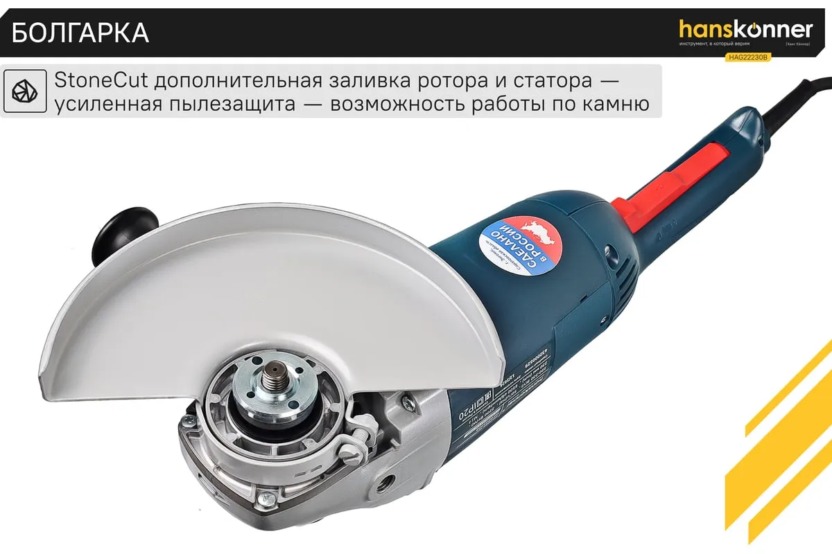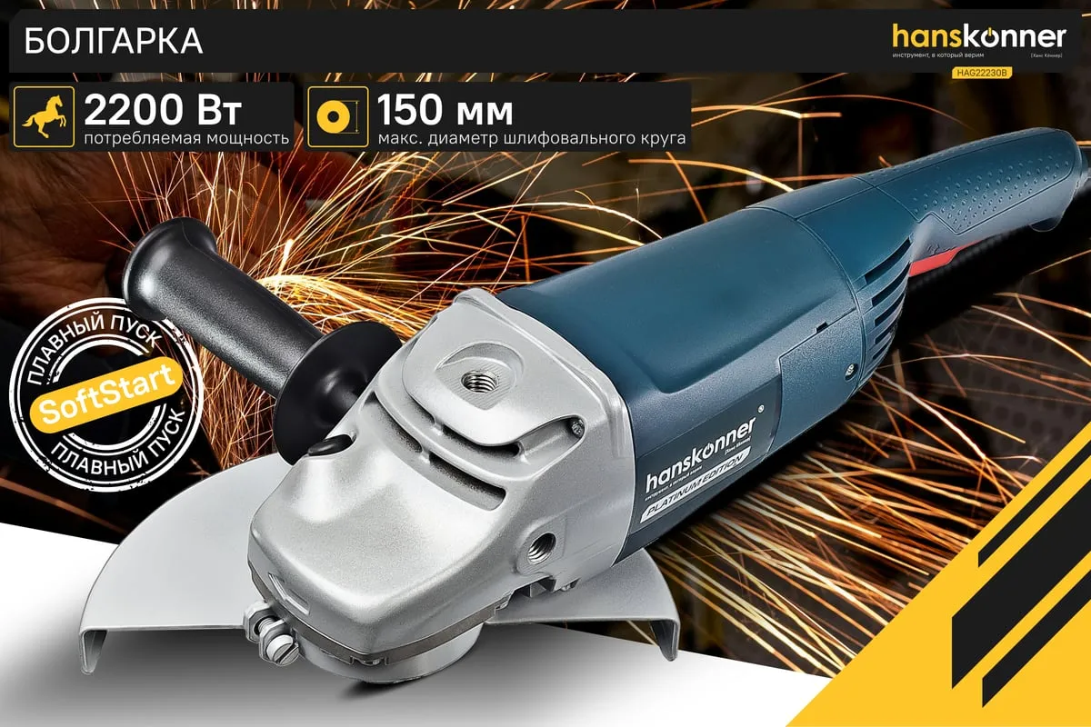 Угловая шлифовальная машина Hanskonner HAG22230B — маневренный и мощный электроинструмент для шлифования и зачистки поверхностей, а также резки металлов, кирпича, керамики или камня без использования воды. Данная модель имеет улучшенную систему охлаждения и пылезащиты, что повышает продуктивность и рабочий ресурс. Также, ресурс инструмента, подкреплен функцией плавного пуска. Практичности в обращении с инструментом содействует поворотная задняя рукоять.