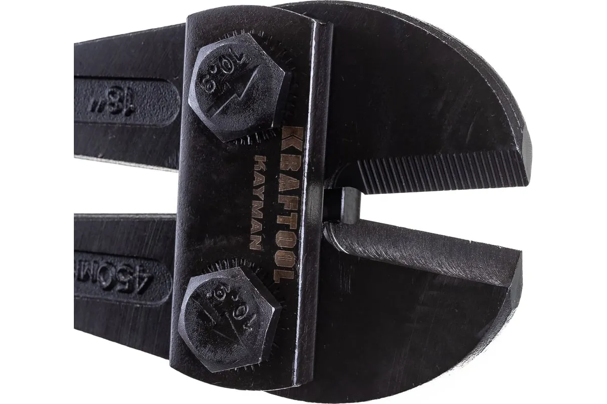 Болторез 450 мм KRAFTOOL KAYMAN EXPERT 23280-045 предназначены для разрезания проволоки и закаленных стержней максимальным диаметром 8 мм. Головка изготовлена из прочной хромомолибденовой стали. Легкие алюминиевые рукоятки с мягкими резиновыми накладками делают работу комфортной. Режущие кромки имеют высокий уровень заточки, а губки регулируются для удобной работы.