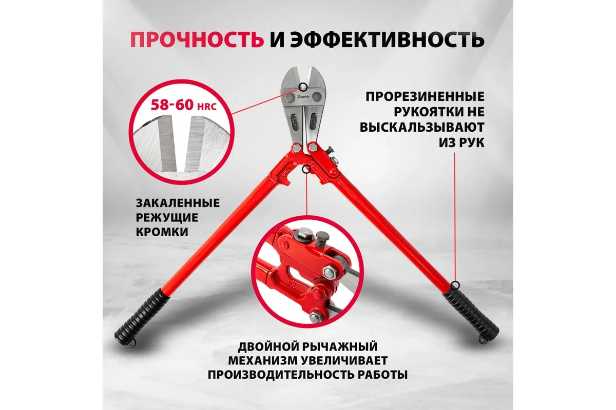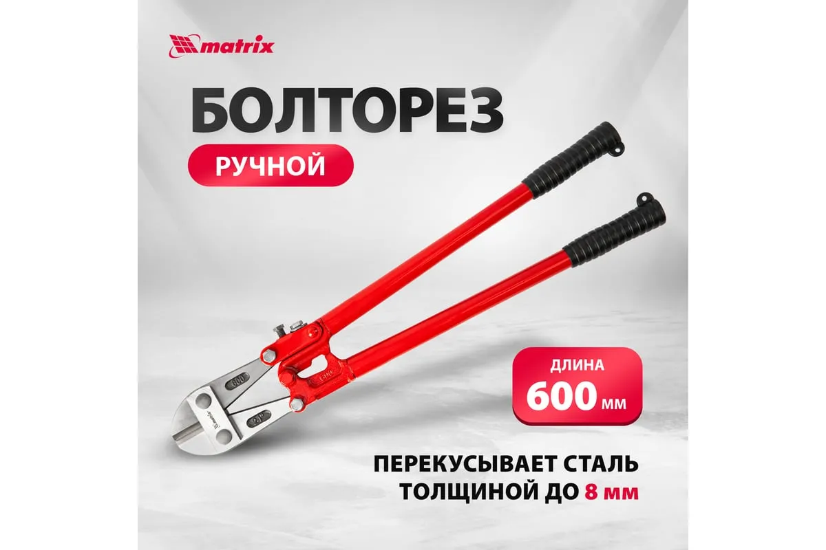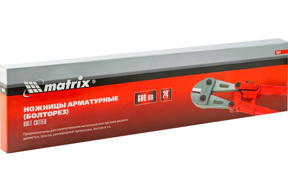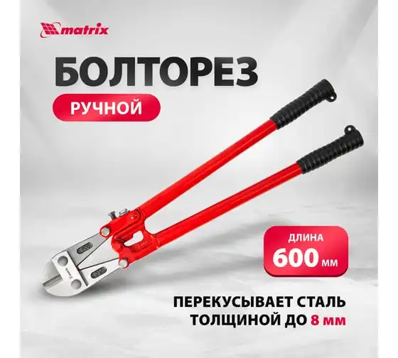 Болторез Matrix 78540 длиной 600 мм/24 дюймов применяется для перекусывания арматурных стержней, болтов, прутков и проволоки из стали толщиной до 8 мм. Он пригодится как частным мастерам, так и спасателям, строителям и другим профессионалам на выездных работах.