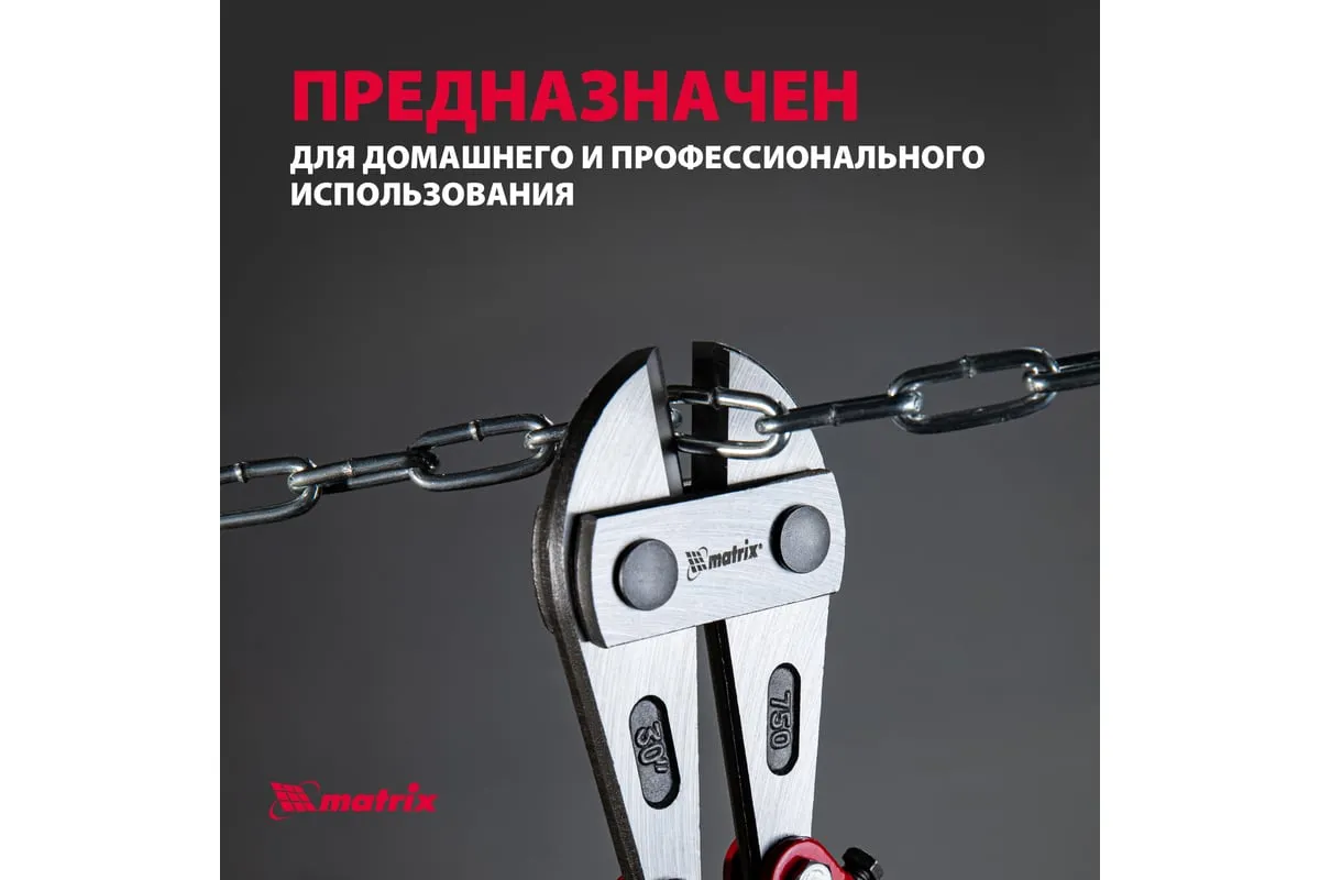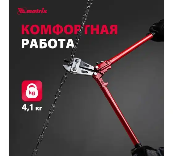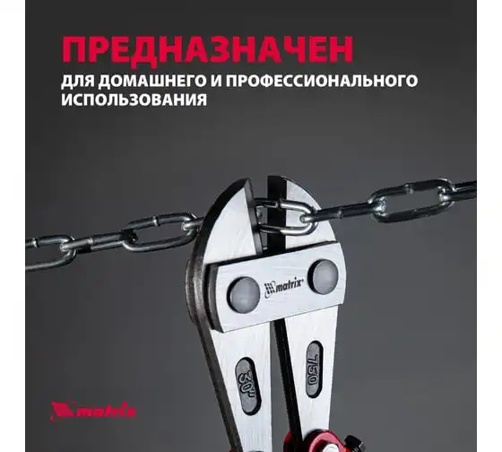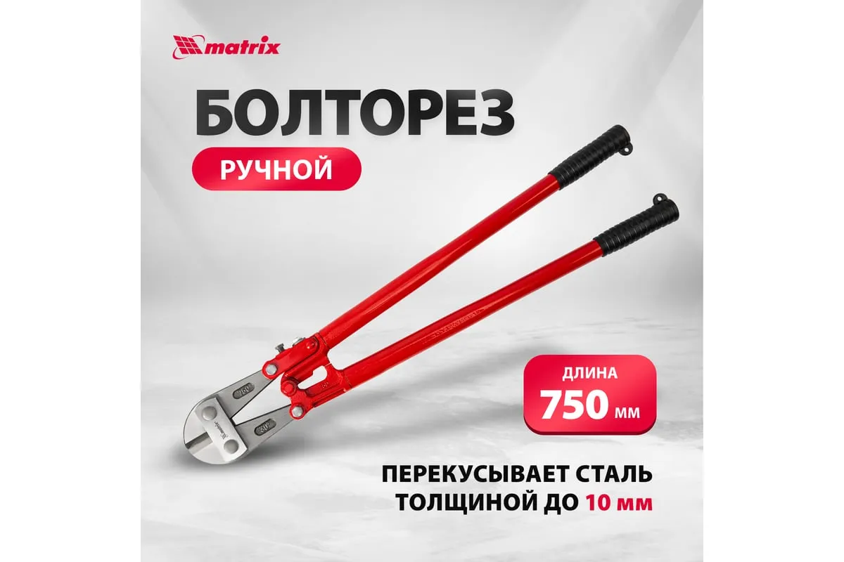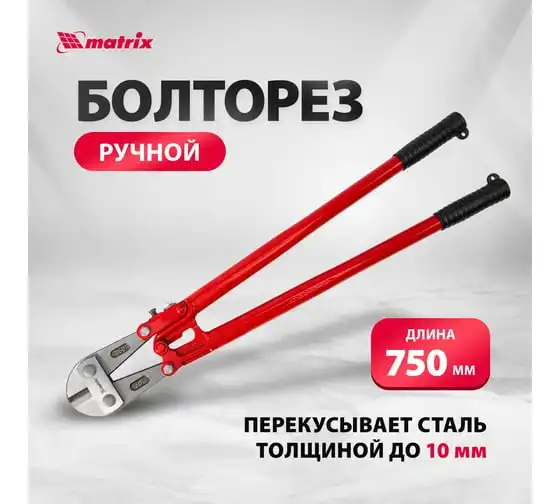 Болторез 750 мм MATRIX 78545 оснащен длинными рычажными рукояткам для максимальной передачи усилия. Изделие выполнено из инструментальной стали. Болторез используется для перекусывания стальной проволоки, болтов и арматурных стержней.