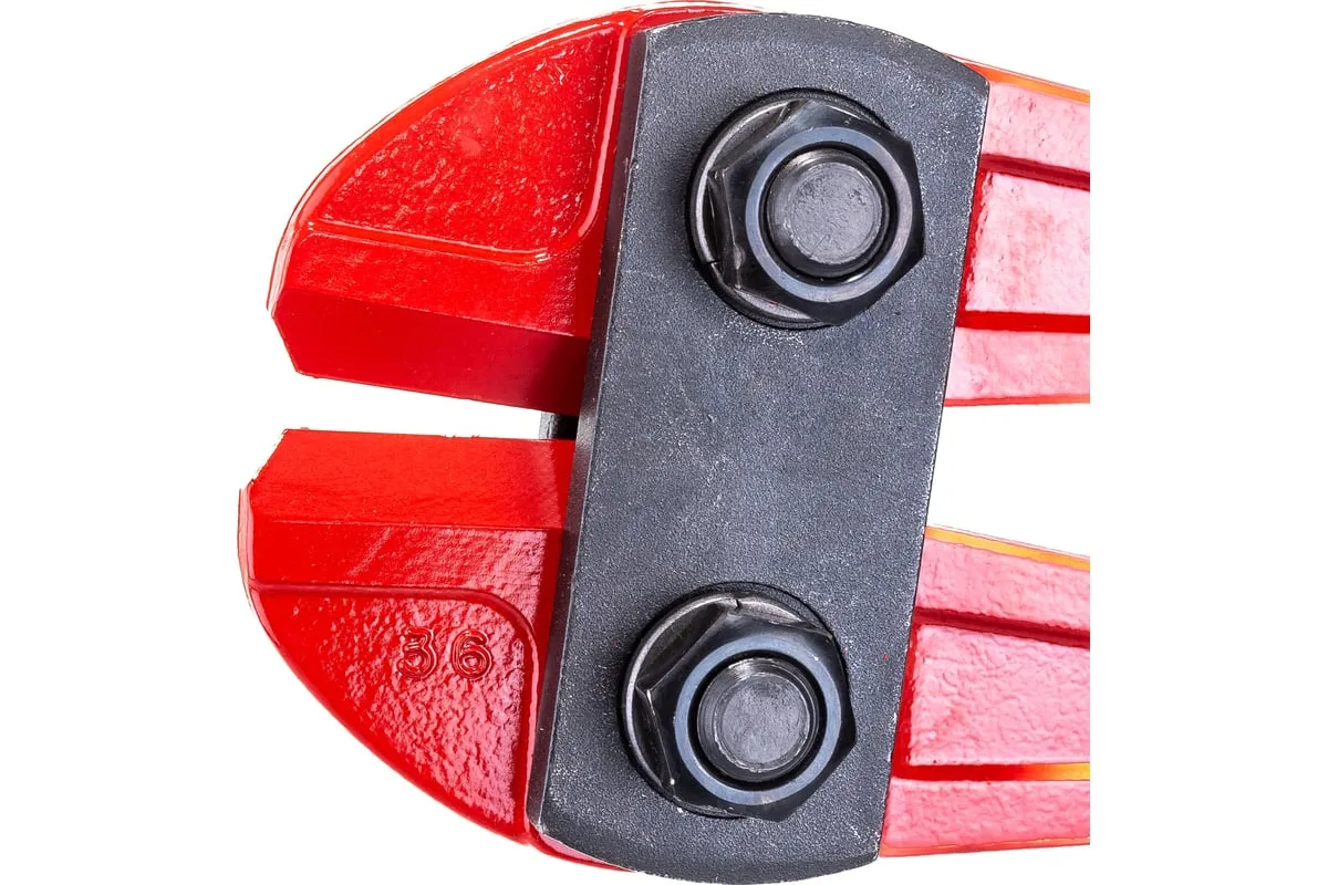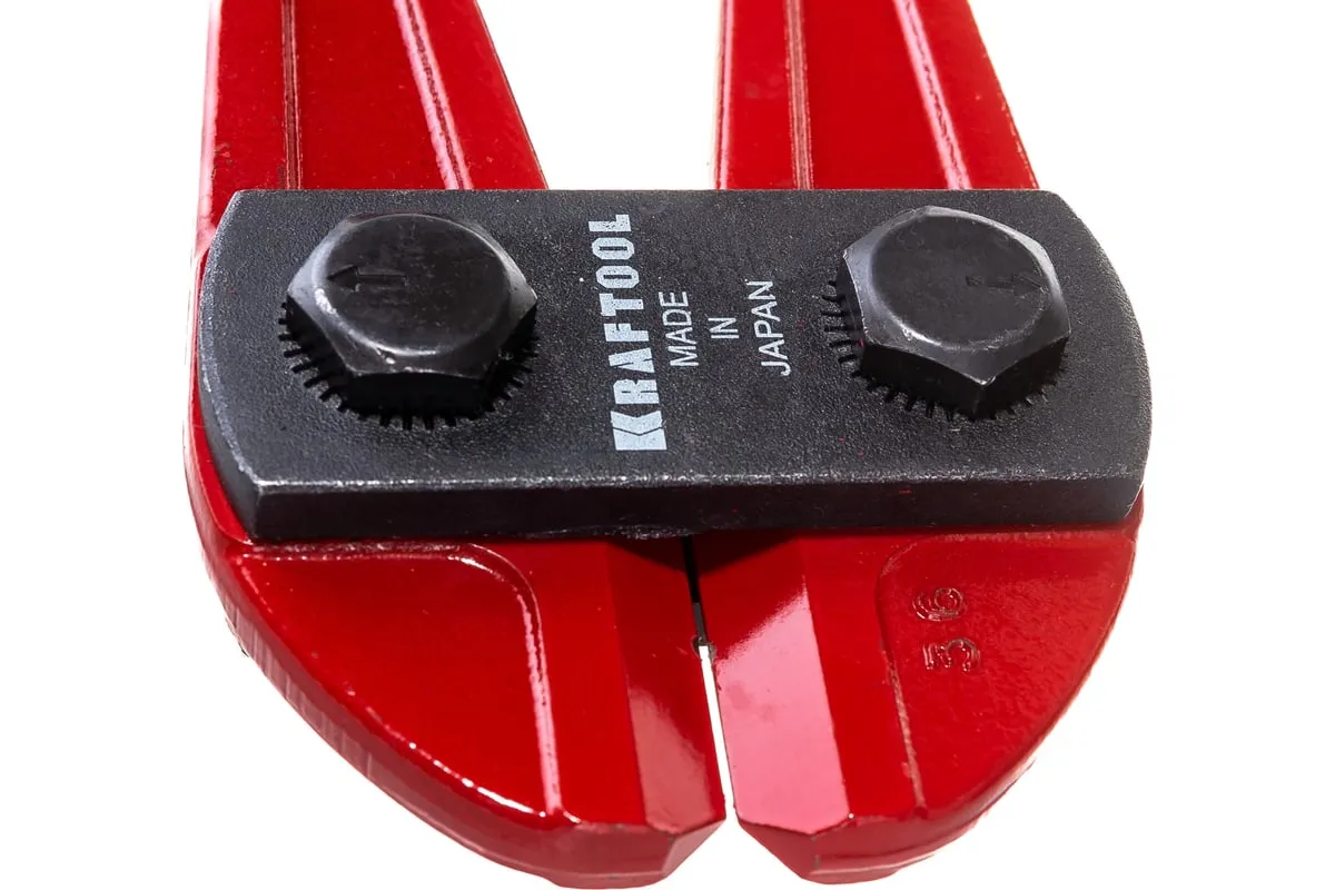 Болторез 900 мм KRAFTOOL RED JAWS 1-23290-090 обладает двойным рычагом для увеличения прилагаемых усилий. Также имеет возможность регулировки губок. Резиновые ручки обеспечивают уверенное удержание инструмента в руках при резке. Инструмент является прекрасным помощником при необходимости разрезания арматуры, закаленных прутьев и болтов, так как обладает высокой режущей способностью.