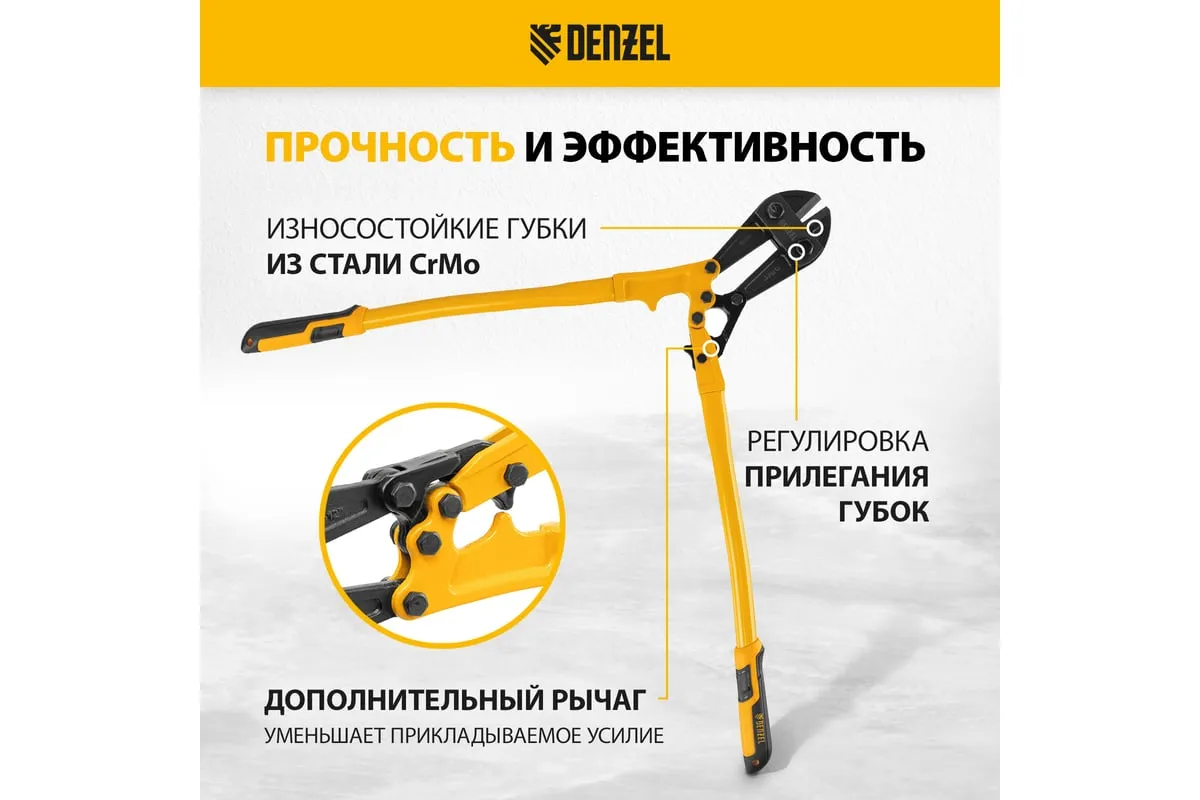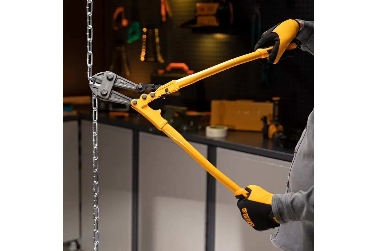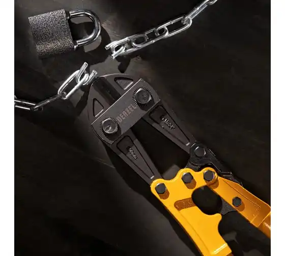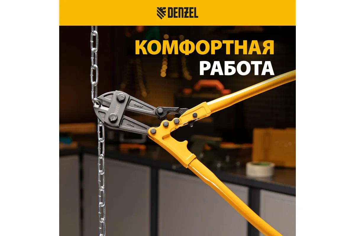 Болторез Denzel 600 мм, 24", Cr-Mo 78536 предназначен для перекусывания стальных прутков диаметром 9.5 мм, болтов и шурупов, тросов, разнородной проволоки. Рабочая часть инструмента выполнена из качественной хромомолибденовой стали, что обеспечивает высокую прочность и долговечность. Покрытие порошковой эмалью увеличивает эксплуатационный ресурс инструмента и защищает рабочую часть от коррозии. Эргономичные двухкомпонентные рукоятки обеспечивают комфортную эксплуатацию и не скользят в руках при работе.