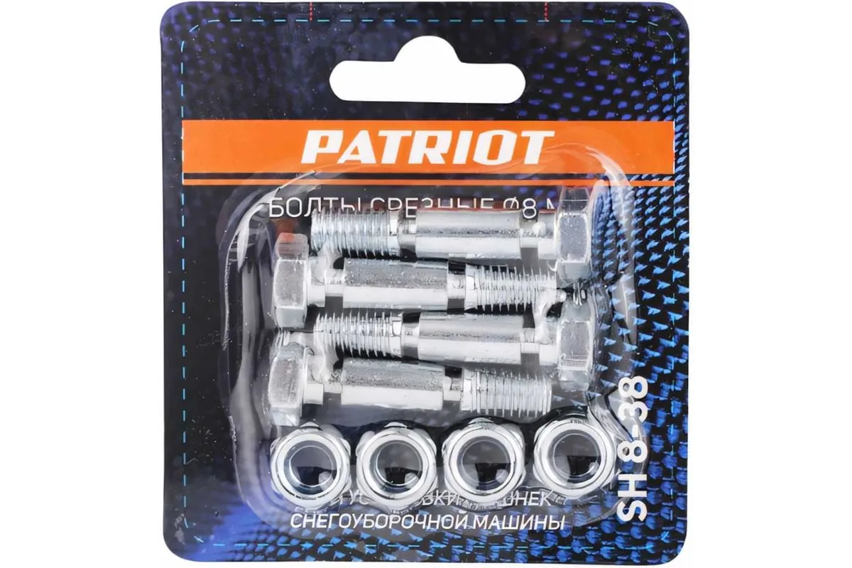 Болты срезные SH 8-38 (4 шт; 8 мм) PATRIOT 426001021 предназначены для снегоуборщиков PS 601, 602Е, 603, 603Е.