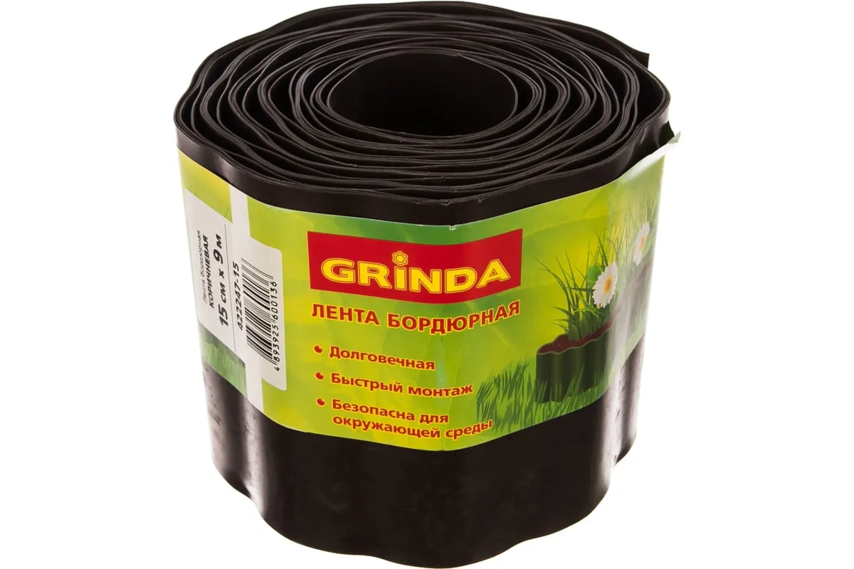 Бордюрная лента Grinda коричневый 15смх9м 422247-15 является декоративным украшением клумб на садовом и огородном участках. Это безопасное для окружающей среды приспособление выполнено из атмосферостойкого пластика коричневого цвета. Размер - 15х900 см.