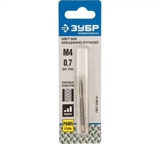 Машинно-ручной метчик, одинарный М4х0,7 ЗУБР 4-28003-04-0.7_z01