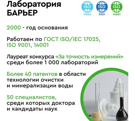неприятных привкусов, запахов, остаточного хлора и его соединений