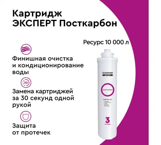 Картридж для фильтра под мойку Барьер ЭКСПЕРТ ПостКарбон, защищает от хлора Р251Р00
