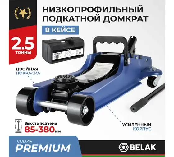 Домкрат гидравлический подкатной БелАК PREMIUM 2,5 т. низкопрофильный в кейсе BELAK BAK.30155