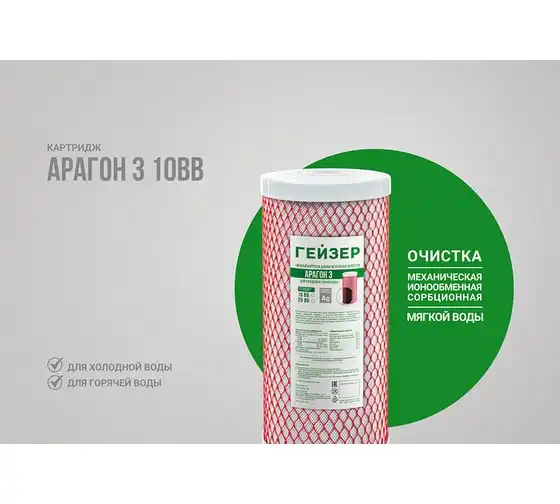 Картридж фильтра для воды Арагон-3 10ВВ Гейзер 30054