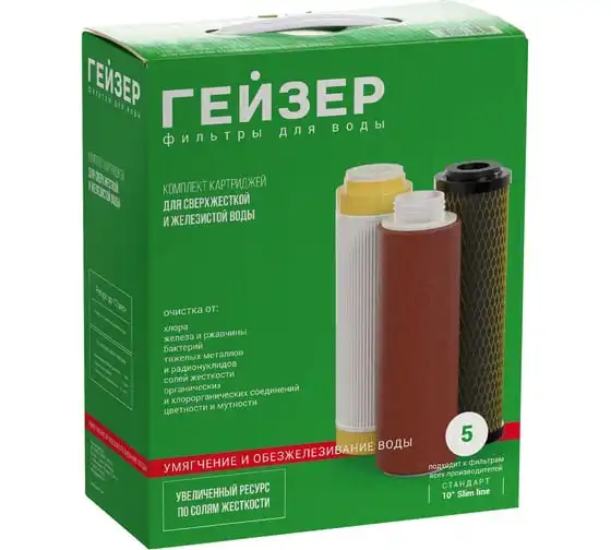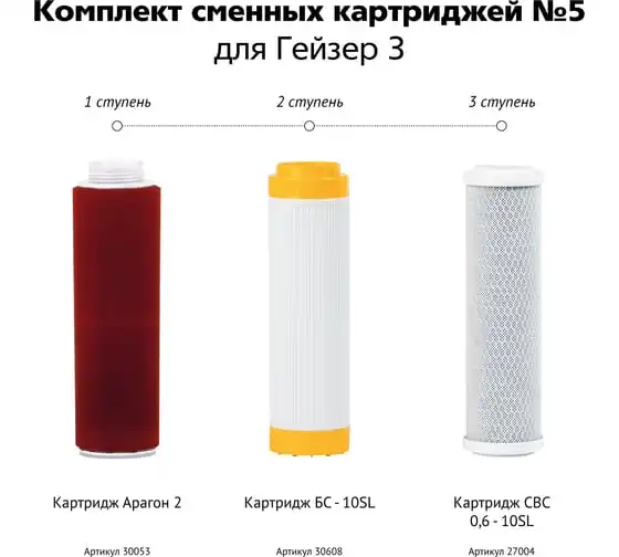 Комплект картриджей №5 к фильтрам для воды Гейзер 3 (для сверхжесткой воды) Гейзер 50009