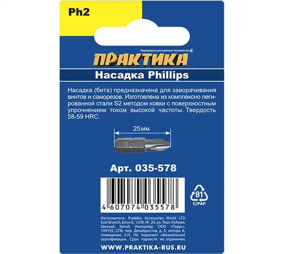 Бита PH-1 Профи (2 шт; 25мм) ПРАКТИКА 035-561