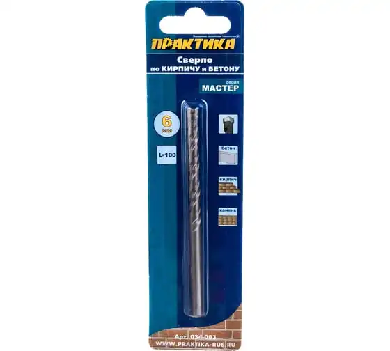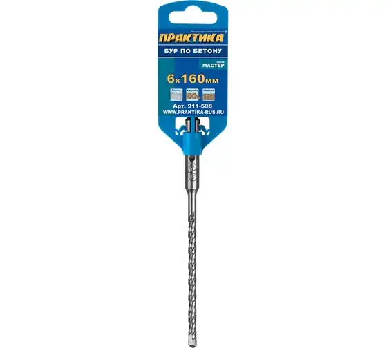 Бур по бетону серия Мастер (6х100/160 мм; SDS-plus) ПРАКТИКА 911-598