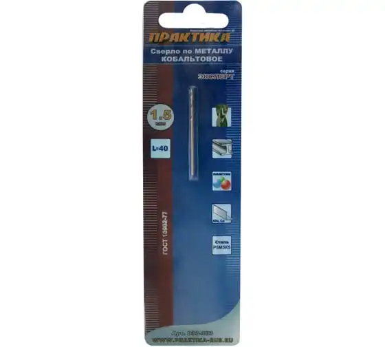 Сверло по металлу кобальтовое (1.5х40 мм) ПРАКТИКА 033-383
