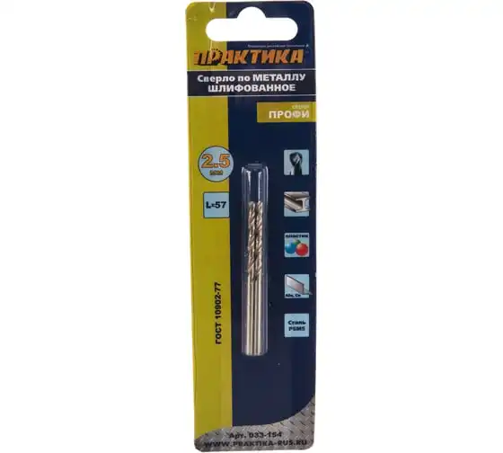 Сверло по металлу (2 шт; 2.5х57 мм) ПРАКТИКА 033-154