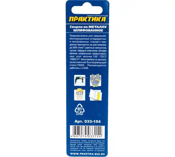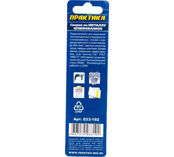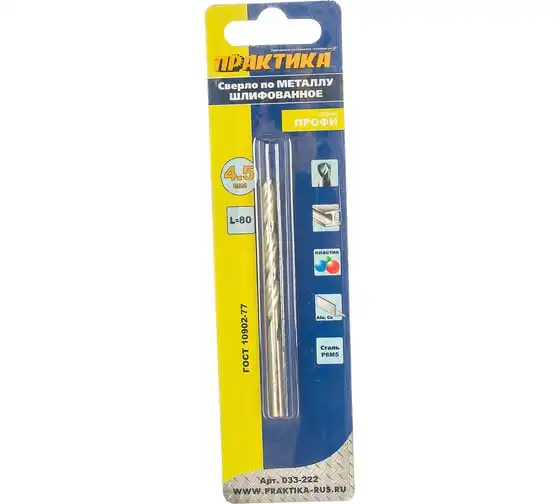 Сверло по металлу (4.5х80 мм) ПРАКТИКА 033-222
