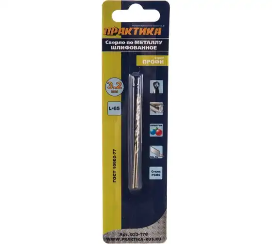 Сверло по металлу (3.2х65 мм) ПРАКТИКА 033-178