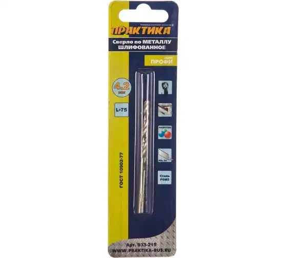 Сверло по металлу (4.2х75 мм) ПРАКТИКА 033-215