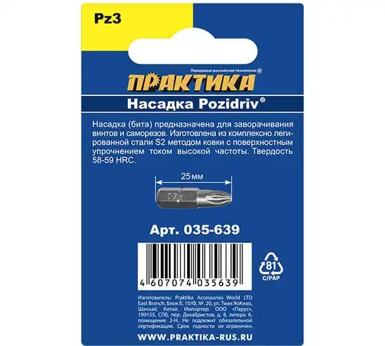 Бита PZ-3 Профи (2 шт; 25 мм) ПРАКТИКА 035-639