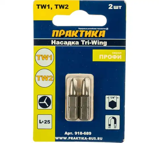 Бита отверточная Профи Tri Wing (2 шт; TW1; TW2; 25 мм) ПРАКТИКА 918-689