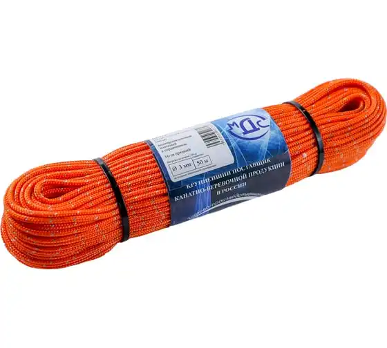 Полипропиленовый плетеный шнур ТОРГОВО-ПРОИЗВОДСТВЕННАЯ КОМПАНИЯ МДС 3 мм 16 прядный с сердечником со светоотражающей нитью 50 м 7930050321769