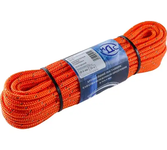 Полипропиленовый плетеный шнур ТОРГОВО-ПРОИЗВОДСТВЕННАЯ КОМПАНИЯ МДС 6 мм 16 прядный с сердечником со светоотражающей нитью 20 м 7930050321790
