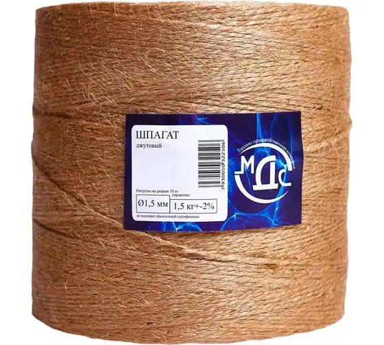 Джутовый крученый шпагат ТОРГОВО-ПРОИЗВОДСТВЕННАЯ КОМПАНИЯ МДС 1,5 кг 7930050322506