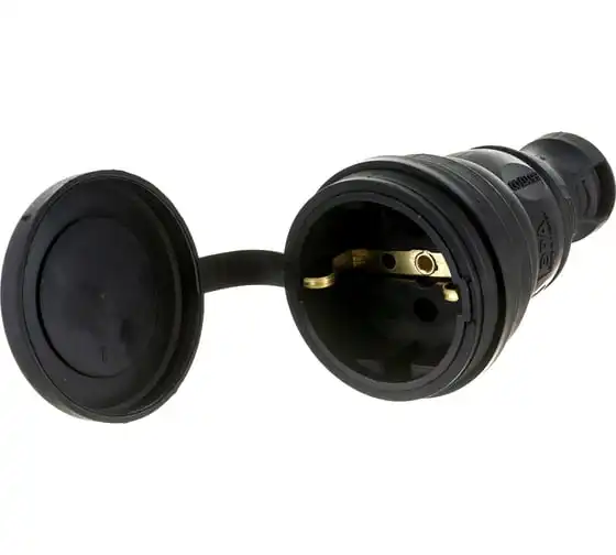Каучуковый разъем ЭРА R8BIP44 c заземлением, прямой, 16A, IP44, черный Б0044541